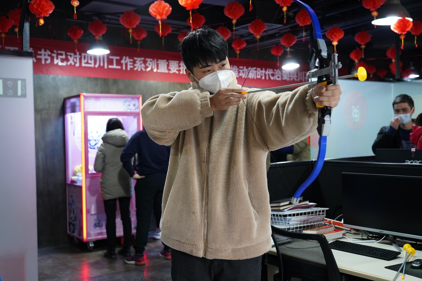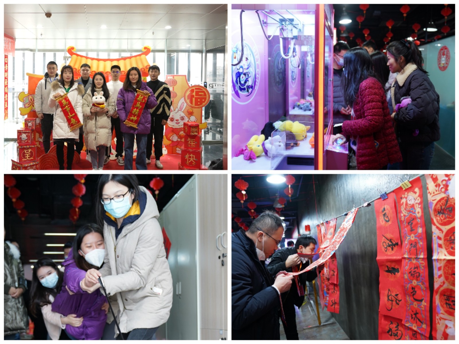 玉兔賀歲迎新年,生肖兔的形象自然成為新年中不可或缺的元素。在非遺體驗區(qū)和新年祈福區(qū),傳統(tǒng)剪紙、春聯(lián)、燈籠技藝與生肖兔的結(jié)合,更是把中華傳統(tǒng)文化體現(xiàn)得淋漓盡致。精美剪紙活靈活現(xiàn)、揮毫潑墨筆走龍蛇,大家紛紛展示自己“得意之作”,表達(dá)辭舊迎新、接祥納福的美好祝愿。而游戲互動區(qū)的“萌力十足娃娃機(jī)”“穿越火線”“戰(zhàn)弓烈焰” 等趣味游戲,不僅讓大家得到了身心放松、精神愉悅,也展現(xiàn)著川投能源人的團(tuán)結(jié)協(xié)作和良好風(fēng)貌。