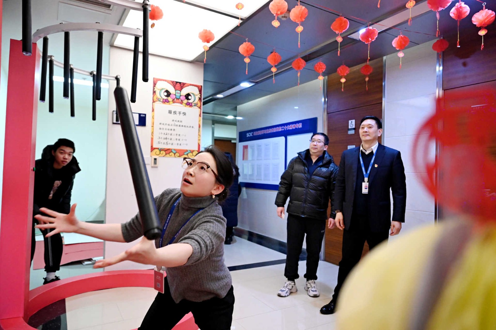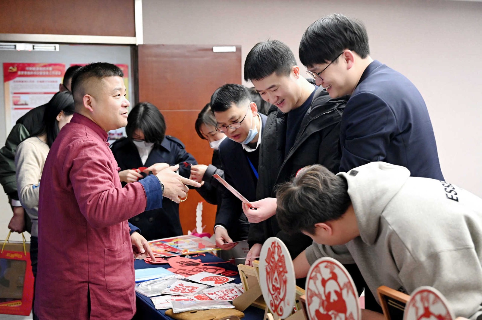此次活動(dòng)采用游園方式,現(xiàn)場(chǎng)設(shè)置了民俗體驗(yàn)區(qū)、非遺手作區(qū)、民俗體驗(yàn)區(qū)、新春互動(dòng)區(qū)、游戲互動(dòng)區(qū)等5個(gè)活動(dòng)區(qū)域,涵蓋猜燈謎、剪窗花、做龍燈、滾滾樂(lè)等8個(gè)活動(dòng)?;顒?dòng)現(xiàn)場(chǎng)每一處都用心裝扮,火紅的中國(guó)燈籠、精美的傳統(tǒng)對(duì)聯(lián)伴隨濃郁的新年味道彌散在會(huì)場(chǎng)的每一個(gè)角落。大家爭(zhēng)先恐后、玩勁十足,盡享新春的熱鬧與喜悅!有的圍著掛著紅線繩的燈謎卡片,仔細(xì)閱讀謎語(yǔ),認(rèn)真思考,沉浸在猜謎的樂(lè)趣中;有的圍在四川剪紙非遺傳承人莊叢燦老師周圍,一邊聆聽著剪紙的技巧,一邊仔細(xì)修理邊角,用心精雕細(xì)琢;有的在學(xué)習(xí)制作龍燈,他們展現(xiàn)出極高的熱情和創(chuàng)造力,根據(jù)自己的想象,給龍燈增添了各種裝飾,如彩紙、亮片等,使得每個(gè)龍燈都獨(dú)具特色。