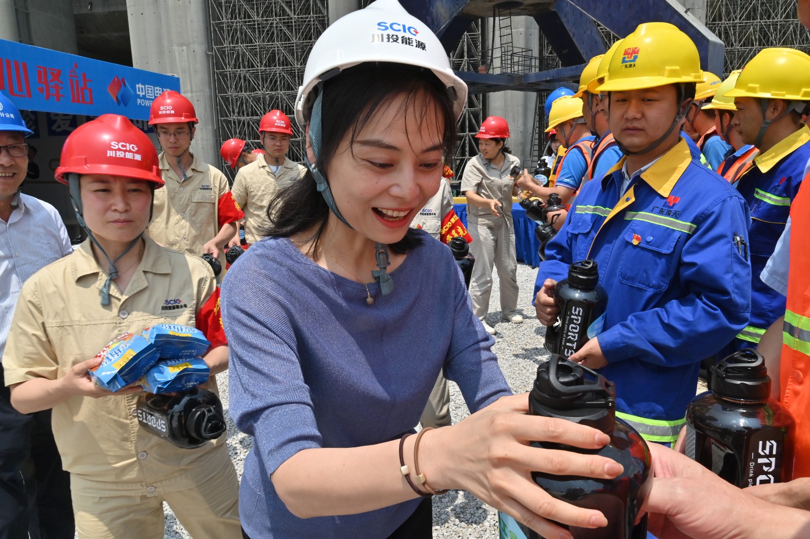 當(dāng)日下午,朱莉一行對(duì)銀江水電站上游圍堰、基坑廠房壩段等防汛防災(zāi)重點(diǎn)領(lǐng)域進(jìn)行了現(xiàn)場(chǎng)檢查,聽取工程建設(shè)情況,并為銀江水電站工地“愛心驛站”進(jìn)行揭牌,為一線建設(shè)者們送上夏季清涼物品和誠(chéng)摯問(wèn)候。