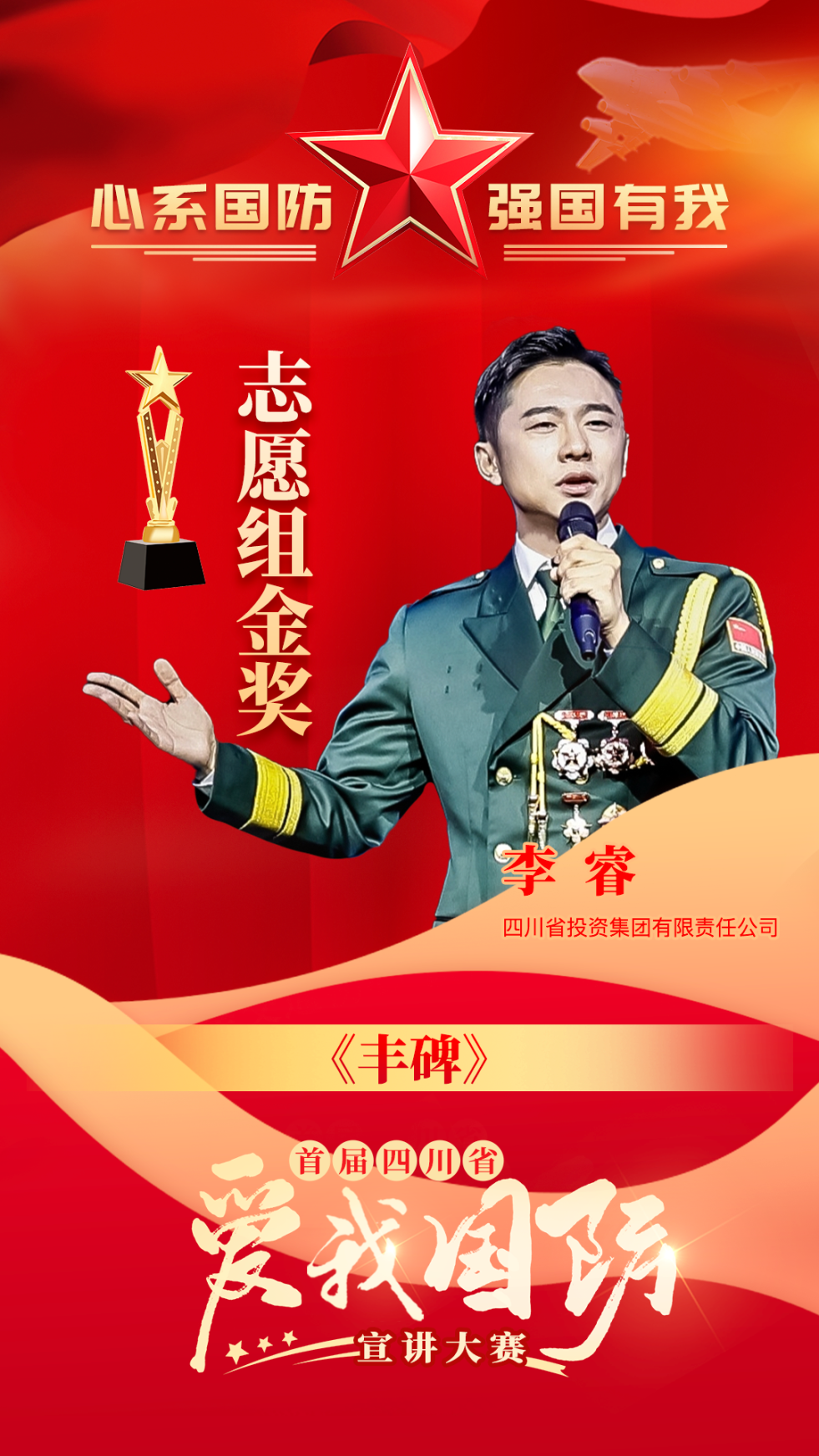 講好新時代國防故事、傳播新時代國防聲音。7月8日,首屆四川省“愛我國防”宣講大賽成果展演在四川廣播電視臺精彩上演,來自全省21個市州和省直有關(guān)部門的170名選手代表參與展演,展示大賽成果。現(xiàn)場揭曉了本屆大賽的金獎和銀獎獲得者,其中,川投能源選手李睿榮獲金獎!
