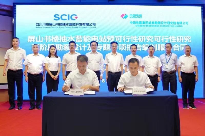 8月26日,川投能源所屬四川川投屏山書樓抽水蓄能開發(fā)有限公司(以下簡稱“川投屏山抽蓄公司”)與中國電建集團成都勘測設計研究院有限公司(以下簡稱“中國電建成都院”)在成都舉行《屏山書樓抽水蓄能電站預可行性研究、可行性研究兩階段勘察設計及專題專項報告編制服務合同》簽約儀式。川投集團黨委書記、董事長,川投能源董事長吳曉曦,中國電建成都院黨委書記、董事長何彥鋒出席并見證簽約;川投集團副總經理張昊,中國電建成都院黨委委員、副總經理趙曉峰出席并致辭;川投集團副總經理肖長青出席并主持儀式。