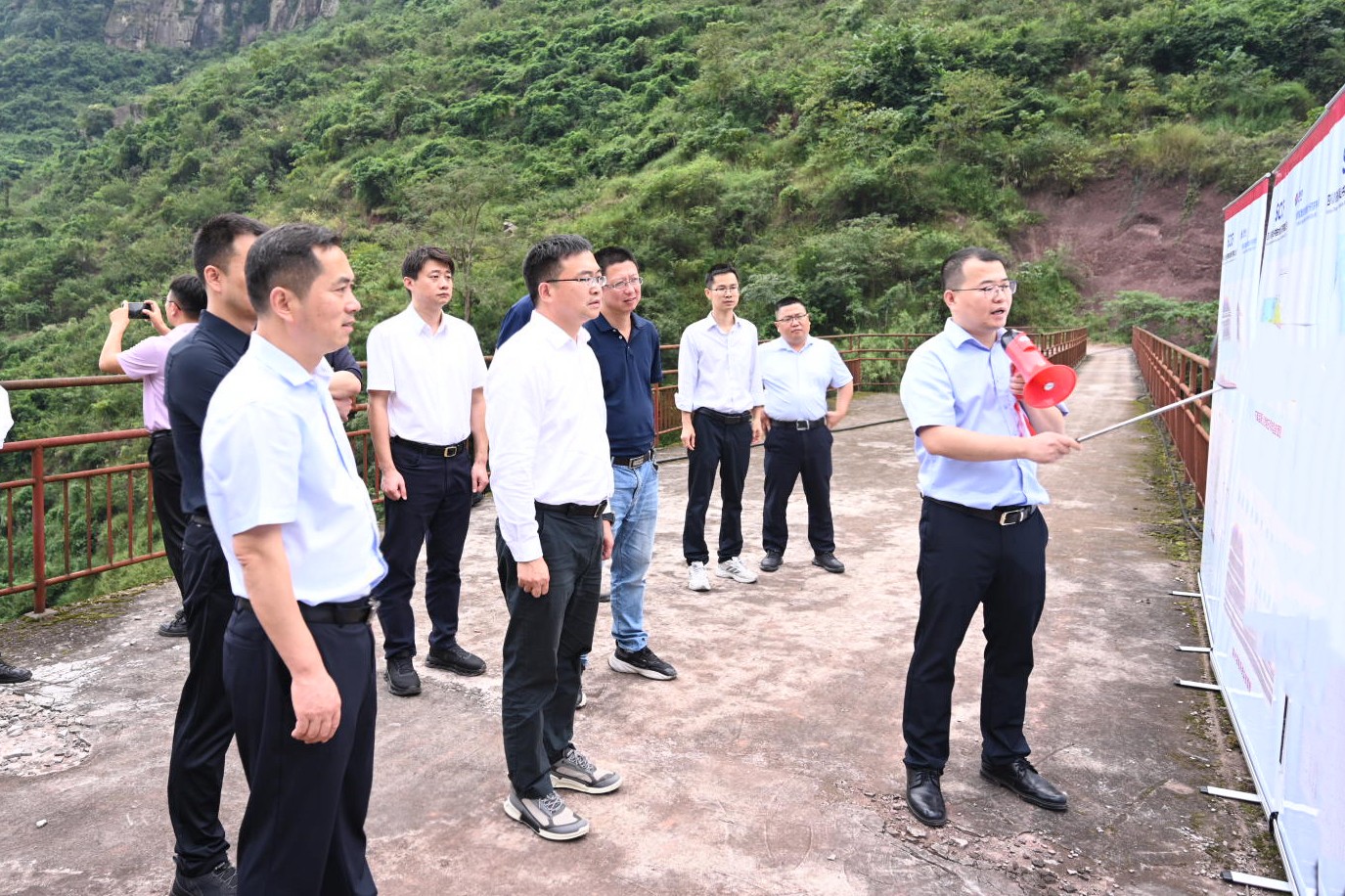 在屏山書樓抽水蓄能電站工程總體布局確定后,項(xiàng)目建設(shè)迎來新進(jìn)展,10月15日,屏山縣委副書記、縣長鐘維平率調(diào)研組深入項(xiàng)目下庫及業(yè)主營地選址地,專題調(diào)研屏山書樓抽水蓄能電站項(xiàng)目建設(shè)情況,并主持召開項(xiàng)目建設(shè)專班工作例會(huì)暨項(xiàng)目推進(jìn)會(huì),川投能源副總經(jīng)理、屏山抽蓄公司董事長王行仁陪同調(diào)研。