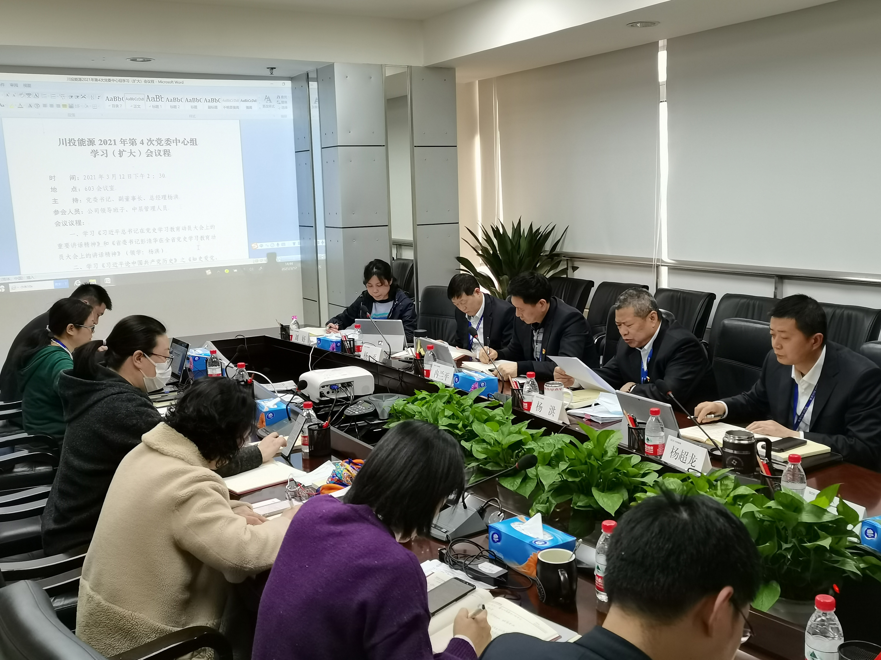 3月12日,川投能源召開黨委理論學(xué)習(xí)中心組學(xué)習(xí)(擴(kuò)大)會(huì)議,傳達(dá)習(xí)近平總書記在黨史學(xué)習(xí)教育動(dòng)員大會(huì)上的重要講話精神和省委書記彭清華在全省黨史學(xué)習(xí)教育動(dòng)員大會(huì)上的講話精神,并集中學(xué)習(xí)《習(xí)近平論中國共產(chǎn)黨歷史》之《知史愛黨、知史愛國》篇章。公司黨委書記、副董事長、總經(jīng)理?xiàng)詈橹鞒謺?huì)議并帶頭領(lǐng)學(xué)。公司領(lǐng)導(dǎo)班子成員、各部門負(fù)責(zé)人參加學(xué)習(xí)。