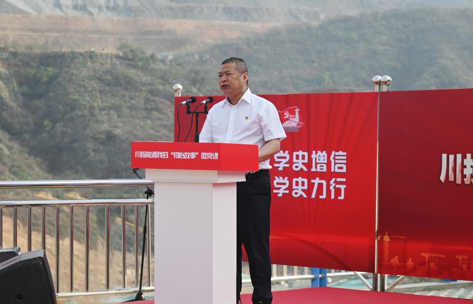 5月19日上午,川投能源“我的初心故事”微黨課巡講團首站來到銀江水電站工地現(xiàn)場,為攀水電及各參建單位黨員代表100余人帶來了一場紅色勵志的“視聽盛宴”。公司黨委書記、副董事長、總經理楊洪,黨委副書記、工會主席楊超龍,副總經理、攀水電公司黨總支書記、董事長徐孝剛及各參建單位負責人參加現(xiàn)場巡講。