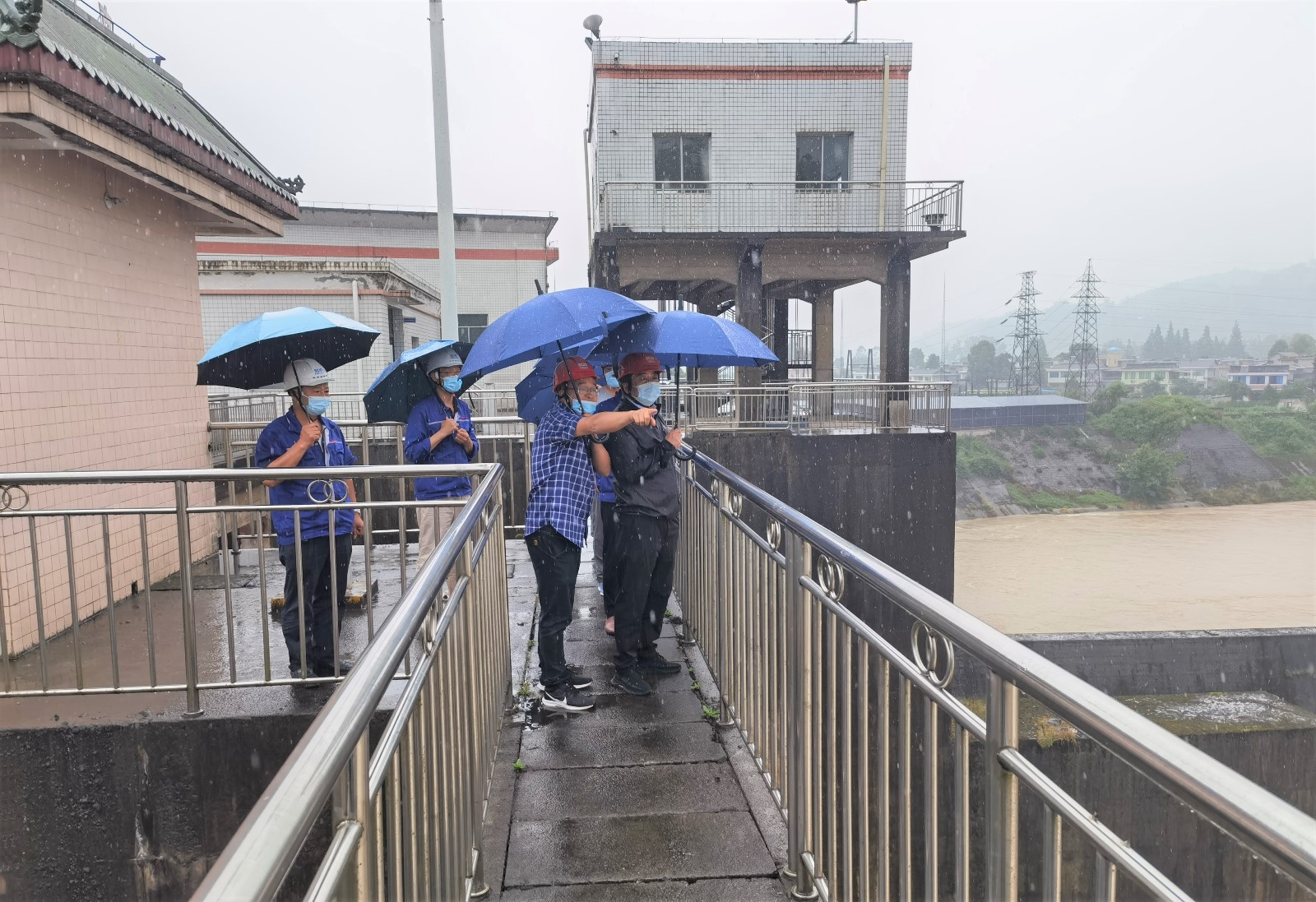 楊濤一行先后對(duì)槽漁灘炭素廠廠區(qū)設(shè)施設(shè)備,各所屬電廠發(fā)電機(jī)層、水輪機(jī)層、場(chǎng)外排水等設(shè)備設(shè)施和庫(kù)岸邊坡進(jìn)行了檢查,并在現(xiàn)場(chǎng)聽(tīng)取了各廠負(fù)責(zé)人關(guān)于防汛工作、安全生產(chǎn)措施落實(shí)、防災(zāi)減災(zāi)和疫情防控等工作的情況匯報(bào),并重點(diǎn)對(duì)庫(kù)區(qū)、大壩、防洪設(shè)施、尾水護(hù)堤修復(fù)工程等進(jìn)行檢查。