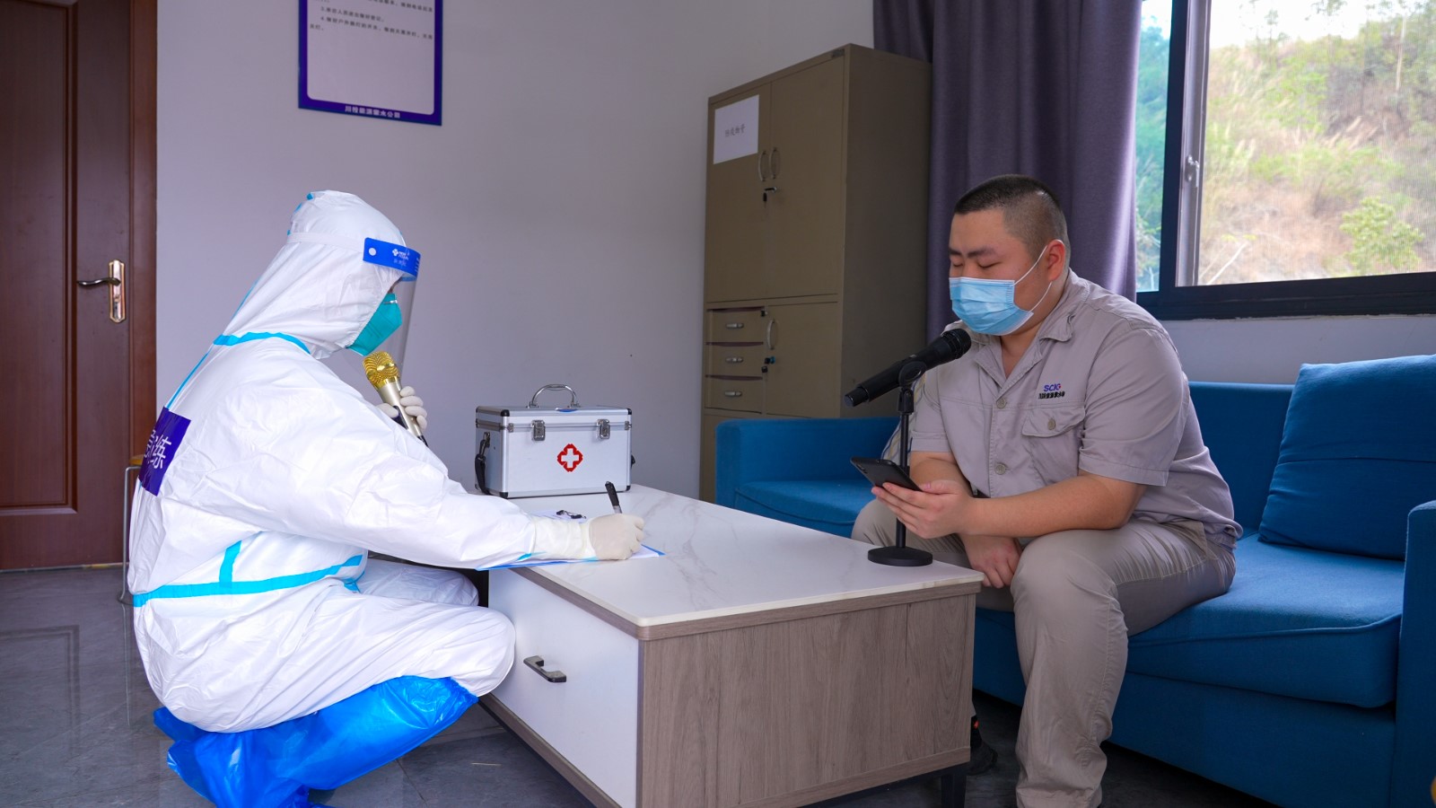 本次演練模擬情景為某日銀江水電站35kV施工變電站員工探親返回攀枝花,在單位內(nèi)接到東區(qū)疾控中心電話通知其在返攀動車上與某確診病例同車廂,被四川省疾控應(yīng)急調(diào)度管理平臺推送為新冠疫情密切接觸者,且有多名同事與其在工作中有近距離接觸。按照公司新冠應(yīng)急預案對應(yīng)等級規(guī)定,經(jīng)公司疫防辦請示疫防領(lǐng)導小組批準,立即啟動疫情防控重大(II級)響應(yīng)。