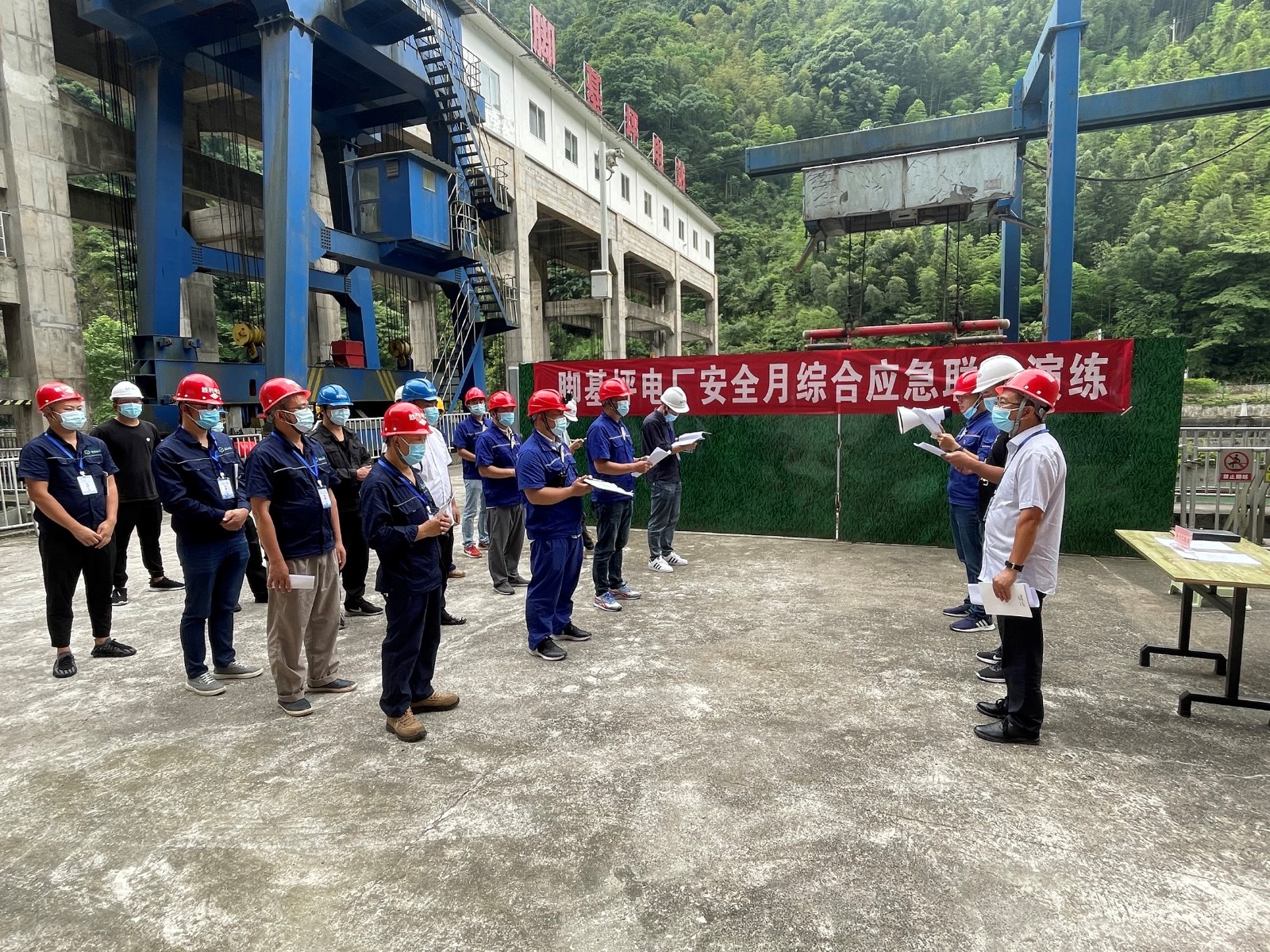 本次演練聯(lián)合企地共建單位“一鎮(zhèn)、一企”──天全縣喇叭河鎮(zhèn)人民政府和勝利電廠,從地震避險、兩種外接電源消失、地質(zhì)災(zāi)害逃生三個方面開展。演練指揮組由喇叭河鎮(zhèn)副鎮(zhèn)長徐志鵬、腳基坪電廠廠長趙兵、勝利公司副總經(jīng)理黃倫組成。