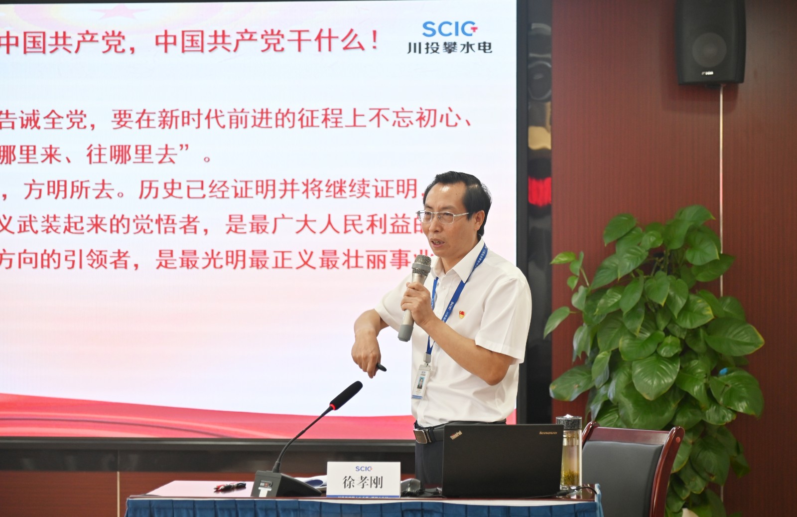 按照川投集團黨委和川投能源黨委總體部署,為深入學(xué)習(xí)貫徹習(xí)近平總書記來川視察重要指示精神和四川省第十二次黨代會精神,傳達學(xué)習(xí)川投集團和川投能源慶?!捌咭弧北碚么髸瘢?月1日下午,攀水電公司組織召開慶祝建黨101周年先進表彰大會暨“書記講堂”,由川投能源副總經(jīng)理、攀水電公司黨總支書記、董事長、攀新能源公司董事長徐孝剛講授專題黨課,宣傳習(xí)近平總書記來川視察重要指示精神和省第十二次黨代會精神。會議由黨總支委員、董事會秘書、工會主席鄧勇主持,攀水電公司全體黨員、非黨干部,參建單位負責(zé)人、聯(lián)建支部支委及“兩優(yōu)一先”表彰對象共計45人參會。