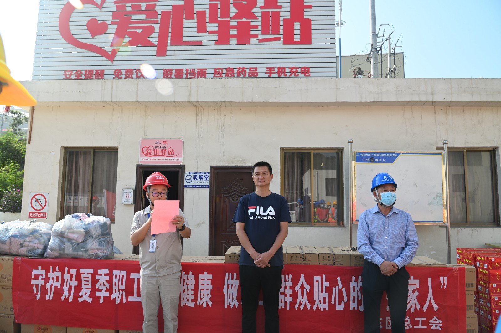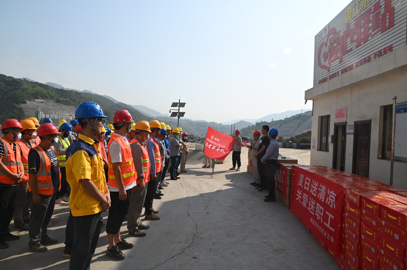 雖然是上午9點,但盛夏的烈日已炙烤著銀江水電站工地。在銀江水電站“愛心驛站”,汪慶元首先致敬全體工友烈日下的“銀江精神”,高度贊揚(yáng)了一線建設(shè)者三年來為銀江水電站建設(shè)做出的積極貢獻(xiàn),并鼓勵他們要戰(zhàn)勝高溫酷暑等重重難關(guān),堅守崗位完成工程建設(shè)任務(wù)。劉欣在講話中談到:東區(qū)工會心系工友,是大家的“娘家人”,希望大家保重身體,平安度夏,在落實安全防護(hù)的前提下積極工作,保質(zhì)保量推進(jìn)項目施工,為攀枝花的經(jīng)濟(jì)建設(shè)做出更大的貢獻(xiàn)。