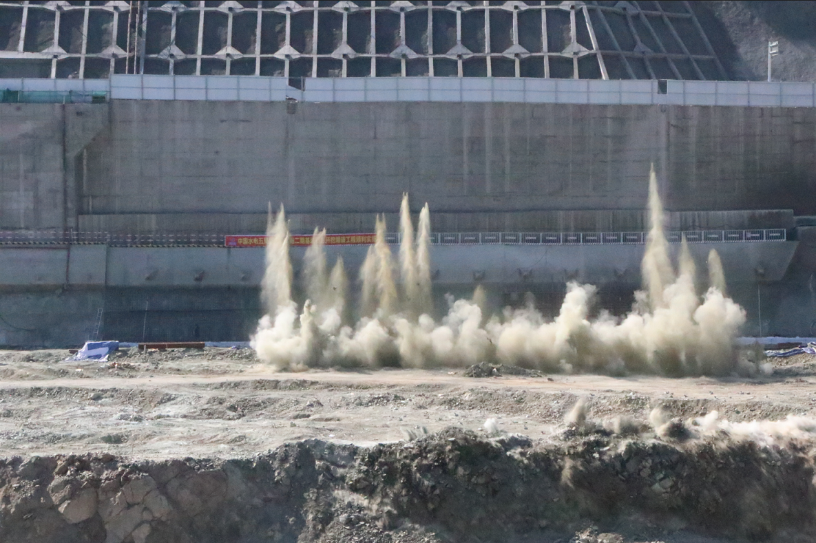 銀江水電站位于攀枝花市主城區(qū),二期基坑開挖施工外圍邊界條件復(fù)雜,左右岸各存在一條出入攀枝花市交通主干道(國道),此外,成昆鐵路渡口支線緊鄰左岸邊坡及二期基坑爆破區(qū),爆破施工屬涉鐵工程,爆破前需要辦理相關(guān)手續(xù)。公司先后多次組織參建單位召開專題會議研究涉鐵爆破事宜,施工單位積極落實審批備案手續(xù),多次往返于成都和攀枝花之間,歷經(jīng)曲折,終于在7月取得了鐵路、公安等主管部門批準,8月13日16點30分,隨著一聲巨響,二期基坑土石方開挖成功迎來“首爆”,主體工程建設(shè)正式邁入“快車道”。