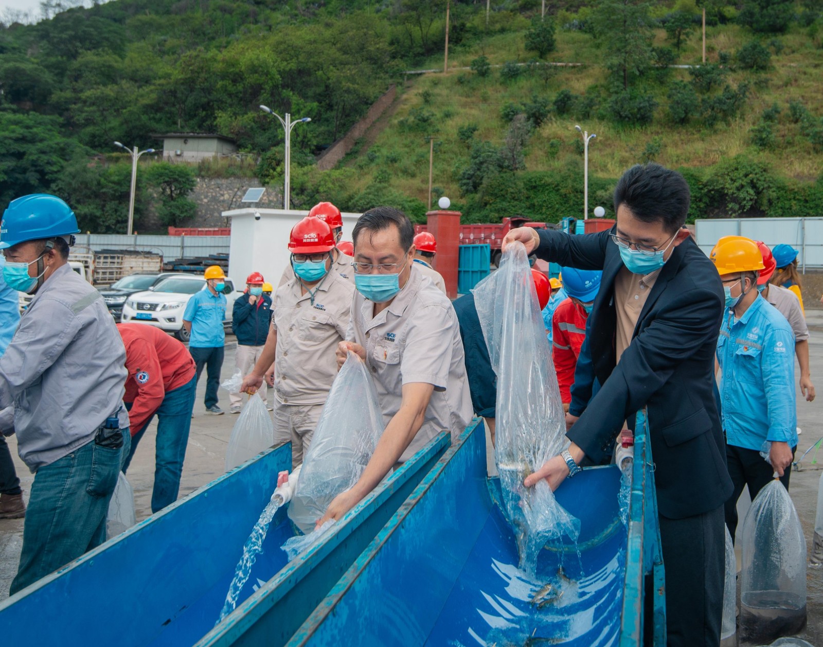 川投能源副總經(jīng)理、攀水電公司黨總支書記、董事長、攀新能源公司董事長徐孝剛宣布放流開始后,帶頭放出了銀江水電站第一尾魚苗,各參加活動人員在工作人員的指引下,有序放流了巖原鯉、白甲魚、長薄鰍及圓口銅魚4種魚苗,共計15.6萬尾,它們都屬于金沙江中游珍稀魚類。同時魚類增殖專家現(xiàn)場向參加活動人員進(jìn)行了放流魚類知識科普,介紹了放流魚類的特點、生活習(xí)性、自然水域種群情況、人工繁殖等情況。