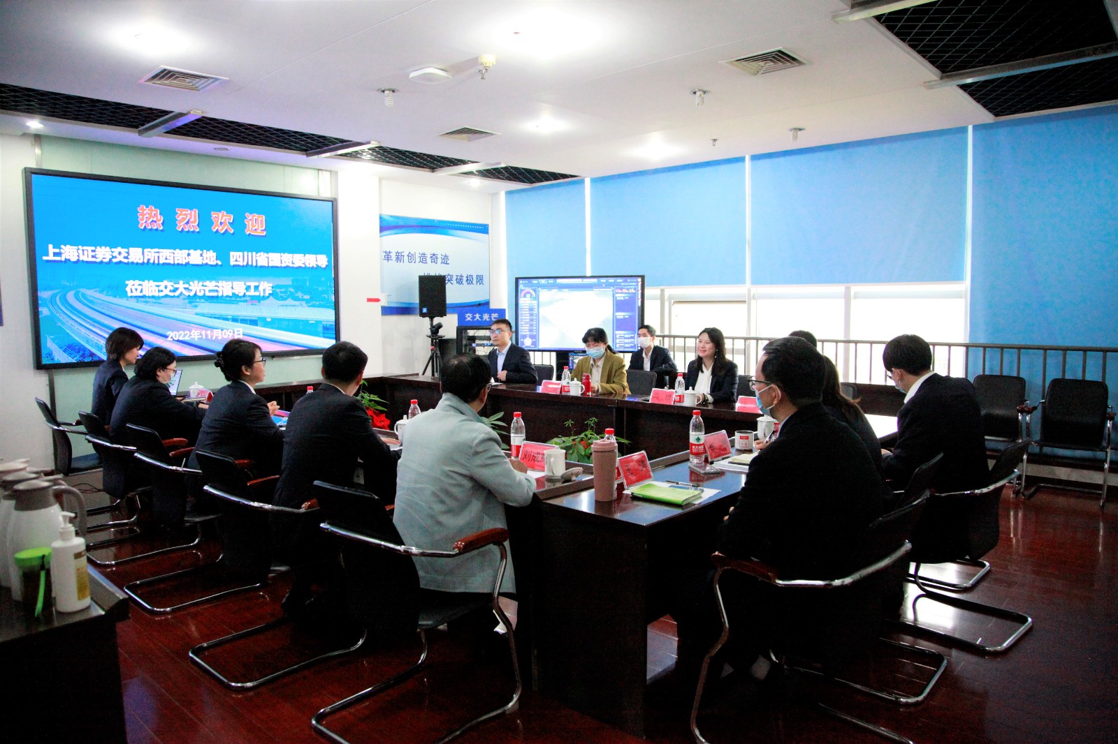 11月9日,上海證券交易所西部基地市場發(fā)展部資深專家馮晴,四川省國資委企業(yè)改革處副處長梅潔一行蒞臨交大光芒調(diào)研指導工作。川投集團總經(jīng)理助理、資本運營部部長龔圓,資本運營部專員張弋奎,川投能源董事會秘書魯晉川陪同調(diào)研。會議由交大光芒董事長梁濤主持。