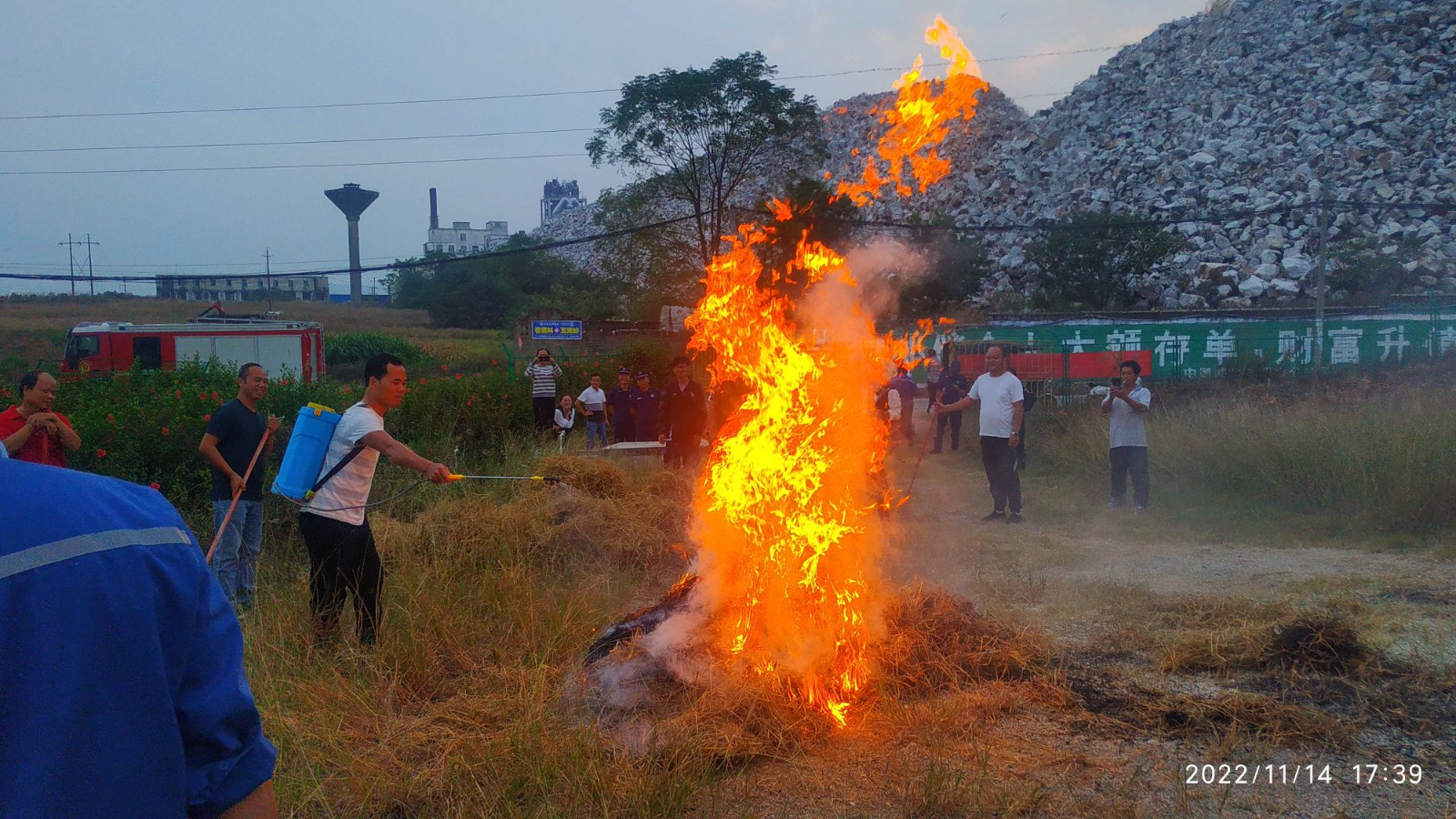 活動緊緊圍繞2022年消防宣傳月主題“抓消防安全,保高質量發(fā)展”來開展。首先,根據(jù)桂平升壓站和光伏場火災風險特點,組織全員觀看《消防四懂三會》《森林防火人人有責》視頻,使大家認識火災危害和懂得消防安全基本知識,進一步提升消防安全意識;緊接著,李維超結合典型火災事故案例對常用消防器材做了精彩講解和培訓,包括消防器材使用方法與維保、注意事項和預防措施等,讓大家充分認識到火災防范和初起火災處置的重要性;最后,結合桂平光伏電站秋冬火險特點,組建2022年“村企聯(lián)防”應急救援隊伍開展現(xiàn)場消防滅火演練,各組分別采用滅火把、滅火器、電動噴淋水壺和微型消防車等滅火器械對模擬火場進行滅火處置。