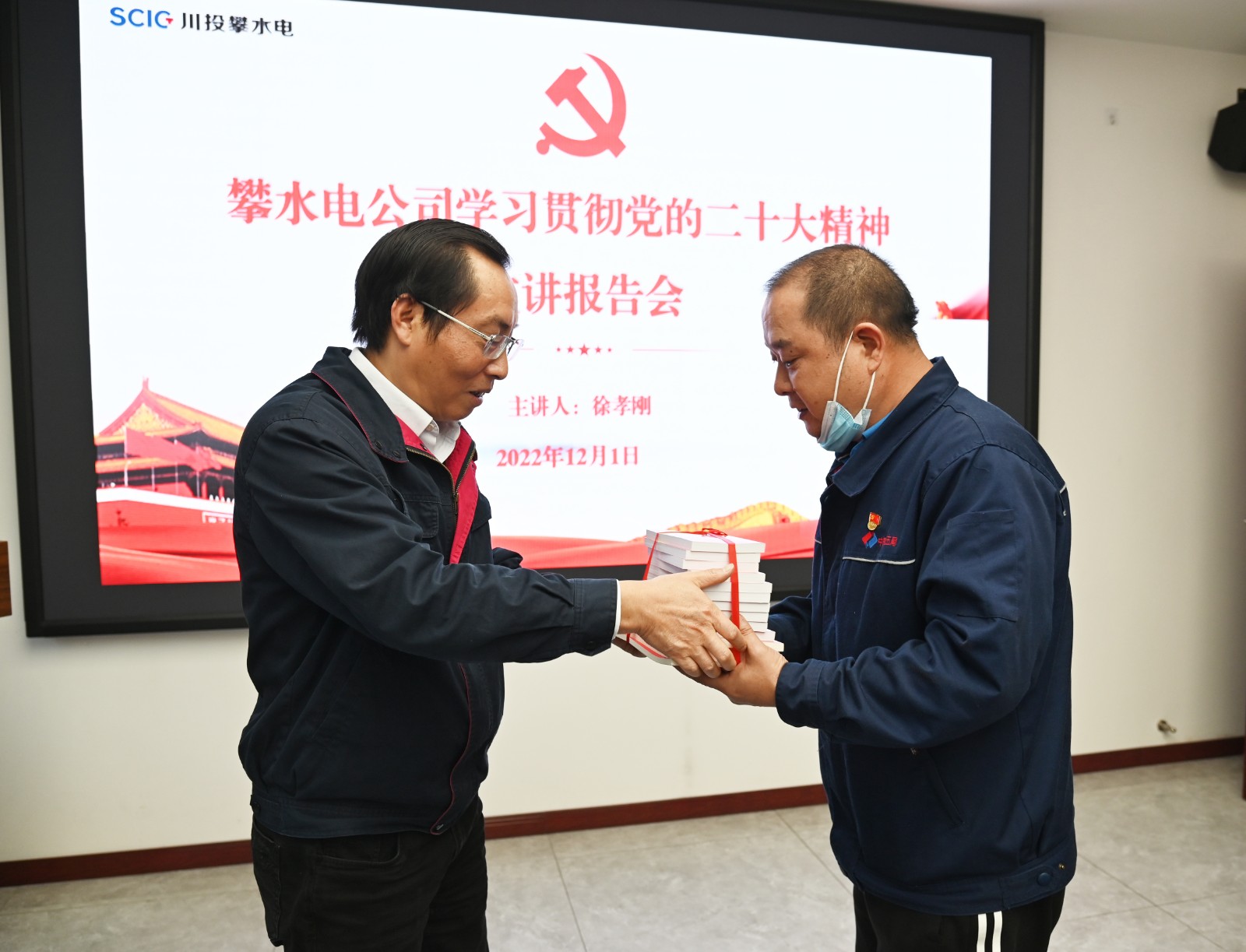 根據(jù)川投集團(tuán)黨委、川投能源黨委有關(guān)要求和攀水電公司黨總支工作安排,為進(jìn)一步學(xué)習(xí)宣傳貫徹黨的二十大精神,激勵銀江水電站參建單位全面學(xué)習(xí)、全面把握、全面落實(shí)黨的二十大精神,12月1日上午,川投能源副總經(jīng)理、攀水電公司黨總支書記、董事長、攀新能源公司董事長徐孝剛到聯(lián)建支部水電五局銀江項(xiàng)目黨支部進(jìn)行黨的二十精神專題宣講。水電五局銀江項(xiàng)目黨支部全體黨員、入黨積極分子、職工代表共計(jì)20余人參加此次宣講會。