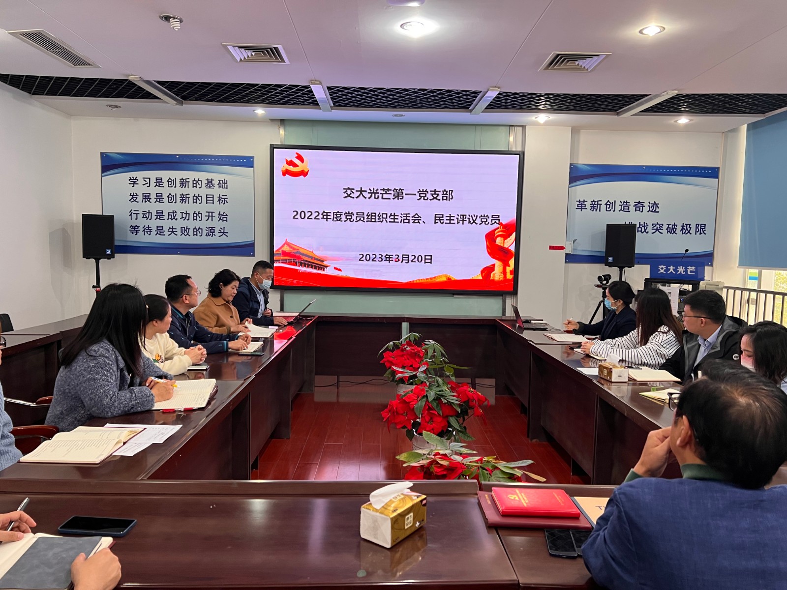 3月20日,按照黨總支工作部署要求,交大光芒第一黨支部召開了2022年度組織生活會(huì)并開展民主評(píng)議黨員。公司黨總支書記、總經(jīng)理劉成輝到會(huì)督導(dǎo)并點(diǎn)評(píng)。第一支部書記、公司副總工程師兼研發(fā)中心副總經(jīng)理王輝博士主持會(huì)議。黨總支委員汪志橋按照雙重組織生活要求,以普通黨員身份參加支部組織生活會(huì)。
