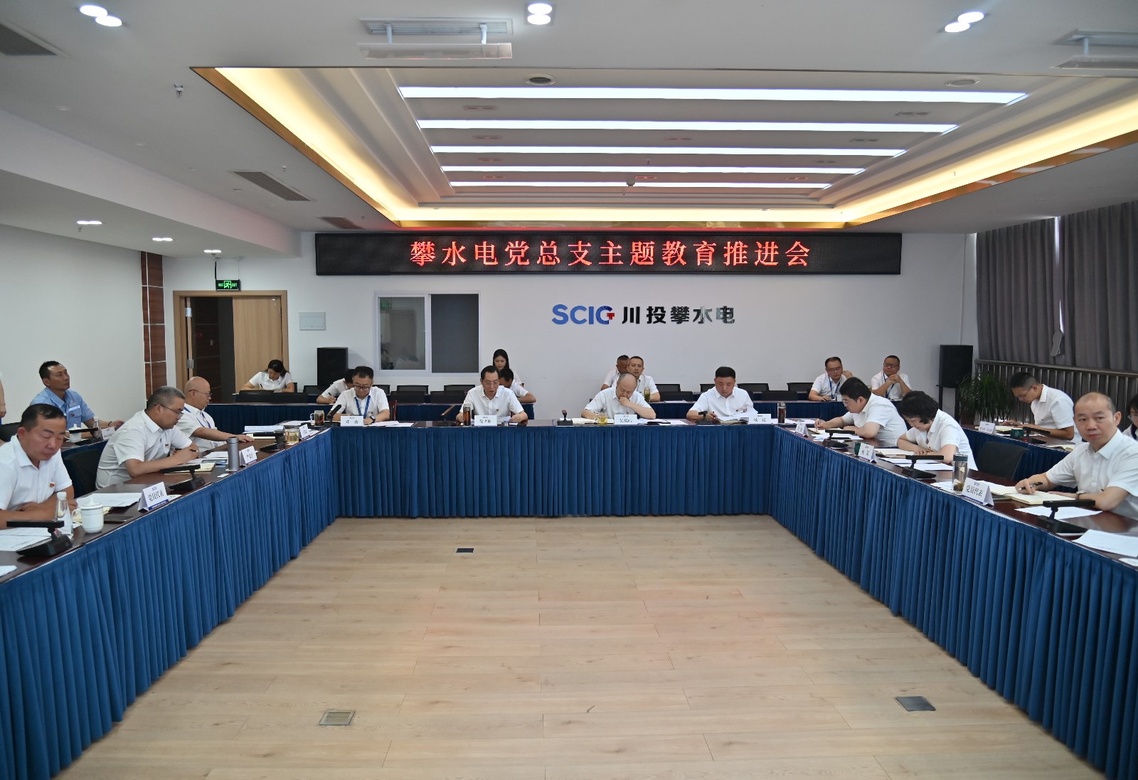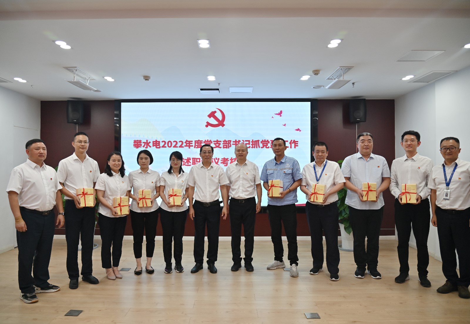 為落實(shí)川投集團(tuán)黨委和川投能源黨委對(duì)主題教育、基層黨建工作的部署要求,5月16日下午,攀水電黨總支組織召開(kāi)主題教育推進(jìn)會(huì)暨2022年度黨支部書(shū)記抓黨建工作述職評(píng)議考核會(huì),攀水電公司、攀新能源公司領(lǐng)導(dǎo)班子成員、各部門(mén)負(fù)責(zé)人、黨支部書(shū)記、支部委員、黨員代表共計(jì)25人參加。會(huì)議由黨總支副書(shū)記、董事會(huì)秘書(shū)、工會(huì)主席鄧勇主持。