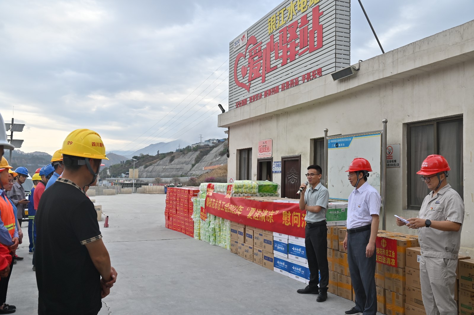6月6日上午,攀枝花市總工會(huì)張平副主席一行來到銀江水電站“愛心驛站”,慰問奮戰(zhàn)在極端高溫下的一線作業(yè)人員和管理人員。攀水電公司黨總支書記、董事長徐孝剛,參建單位代表及公司志愿者服務(wù)隊(duì)參加慰問,公司黨總支副書記、董事會(huì)秘書、工會(huì)主席鄧勇主持活動(dòng)。