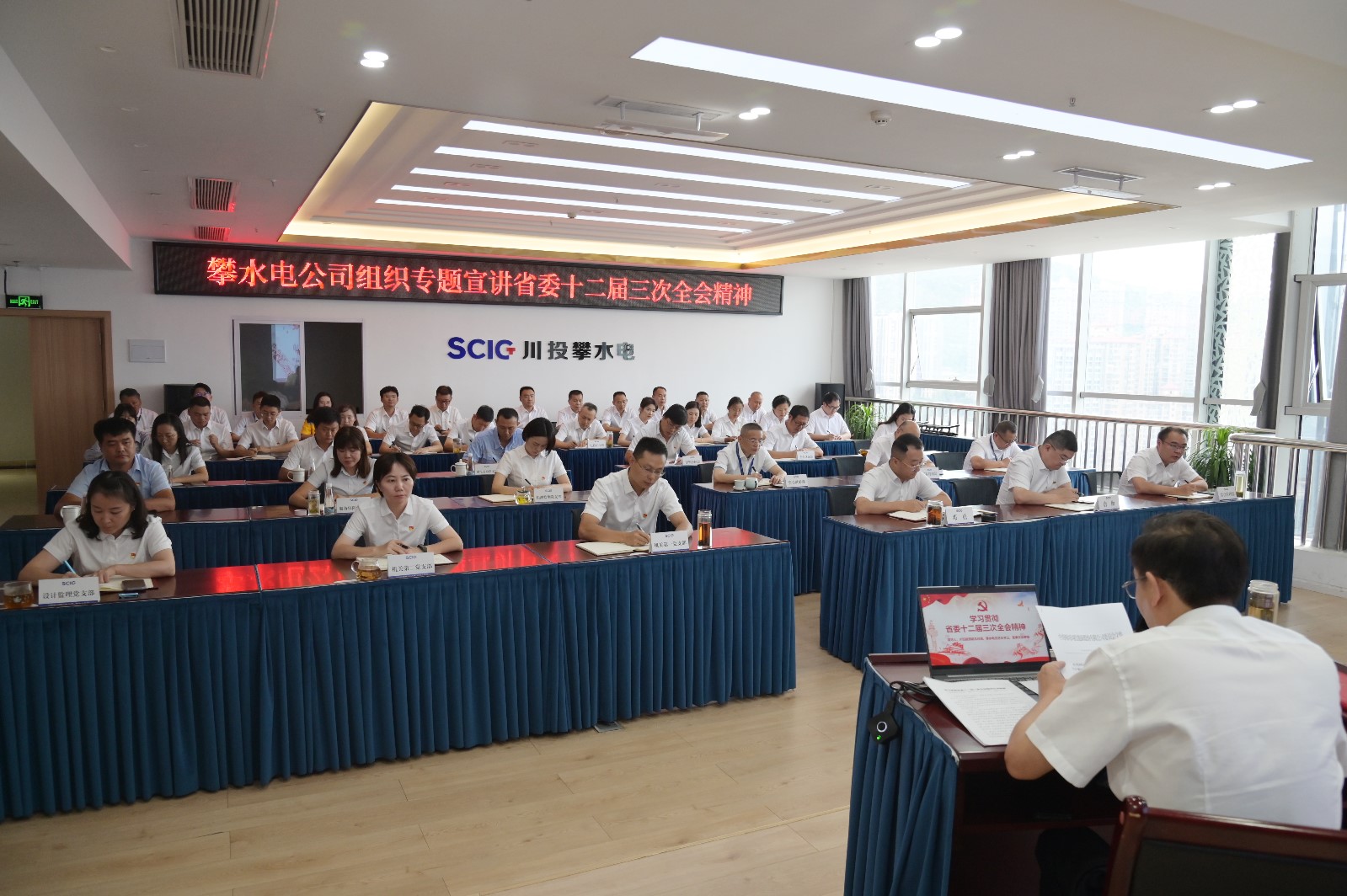 為進(jìn)一步引導(dǎo)廣大職工深入學(xué)習(xí)貫徹省委十二屆三次全會重大決策部署,激發(fā)大家干事創(chuàng)業(yè)、堅定推動高質(zhì)量發(fā)展的精氣神,8月19日下午,川投能源副總經(jīng)理、攀水電公司黨總支書記、董事長徐孝剛進(jìn)行省委十二屆三次全會精神專題宣講。公司全體黨員、職工,各參建單位黨員職工代表共計45人參加此次宣講會。