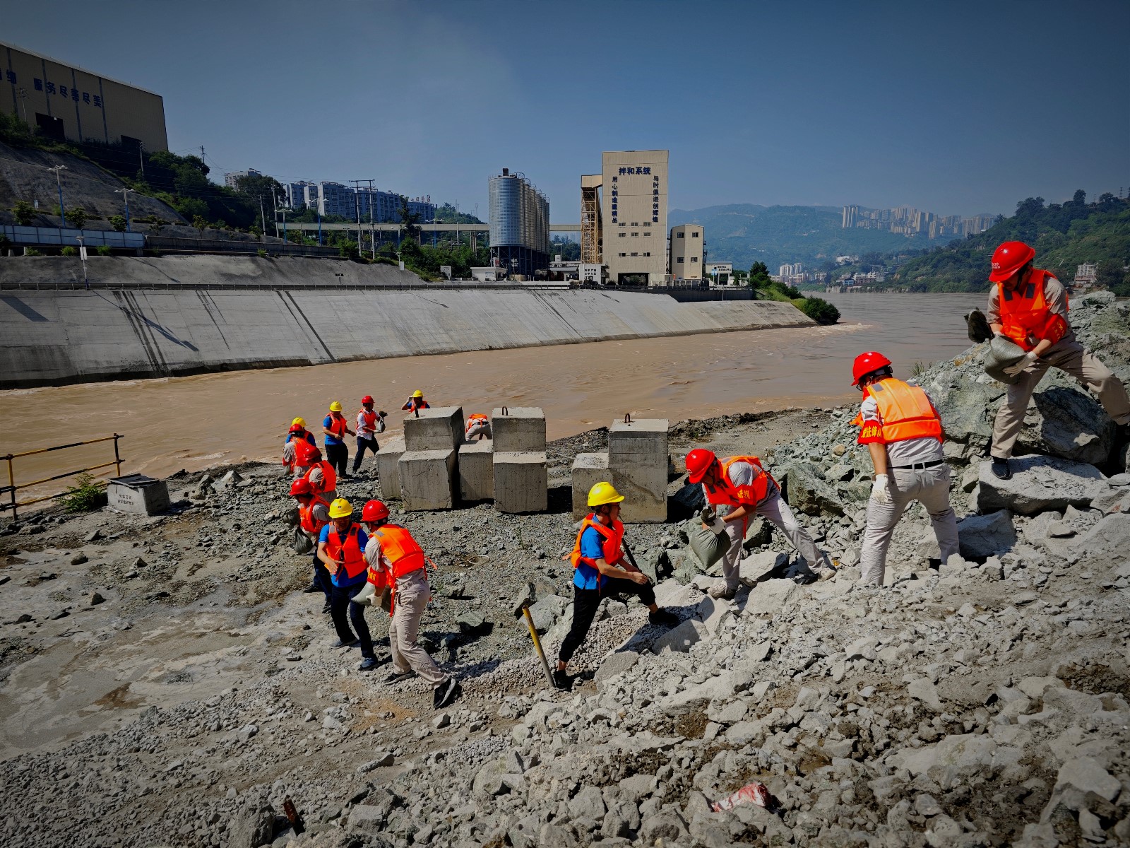 活動中,由公司黨員領(lǐng)導(dǎo)帶頭,分組對導(dǎo)流明渠邊坡、安全體驗(yàn)館、上下游圍堰及基坑、導(dǎo)流明渠進(jìn)出口等部位進(jìn)行了全面詳細(xì)的巡視檢查?;顒舆€對防洪度汛應(yīng)急物資進(jìn)行了補(bǔ)充,有的拿鐵鍬、有的拿編織袋,通過緊密配合,迅速完成幾百個防汛沙袋的裝袋,并排成長隊(duì)接力運(yùn)送,將沙袋搬運(yùn)至重點(diǎn)部位整齊堆放。通過半日的緊張勞動,參加人員衣背早已被汗水浸透,但他們沒有絲毫怨言,更是講到這次活動不僅補(bǔ)充了防汛物資,還真正提高了“防大汛、救大災(zāi)、搶大險(xiǎn)”的安全意識和應(yīng)急搶險(xiǎn)能力,將繼續(xù)堅(jiān)守工作崗位,以汛為令、聞汛而動,在防洪度汛和應(yīng)急搶險(xiǎn)中發(fā)揮先鋒模范作用,保障銀江水電站工程建設(shè)安全順利推進(jìn)。