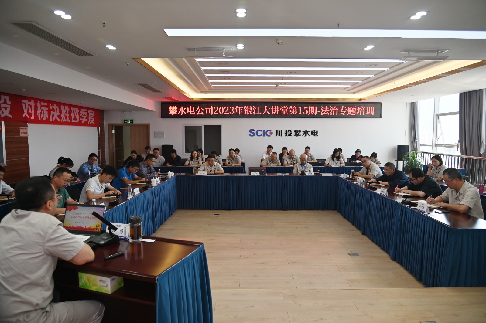 為深入學(xué)習(xí)宣貫黨的二十大精神,認(rèn)真貫徹落實(shí)習(xí)近平法治思想,積極落實(shí)省國(guó)資委、川投集團(tuán)、川投能源關(guān)于“送法進(jìn)企業(yè)”活動(dòng)要求,進(jìn)一步提升企業(yè)依法治理和合規(guī)經(jīng)營(yíng)能力,切實(shí)增強(qiáng)廣大干部職工法律意識(shí)和法治素養(yǎng),2023年10月31日,公司精心組織開展了第15期銀江大講堂——法治專題培訓(xùn),公司在攀領(lǐng)導(dǎo)、員工及參建單位人員共計(jì)40余人參加培訓(xùn)。