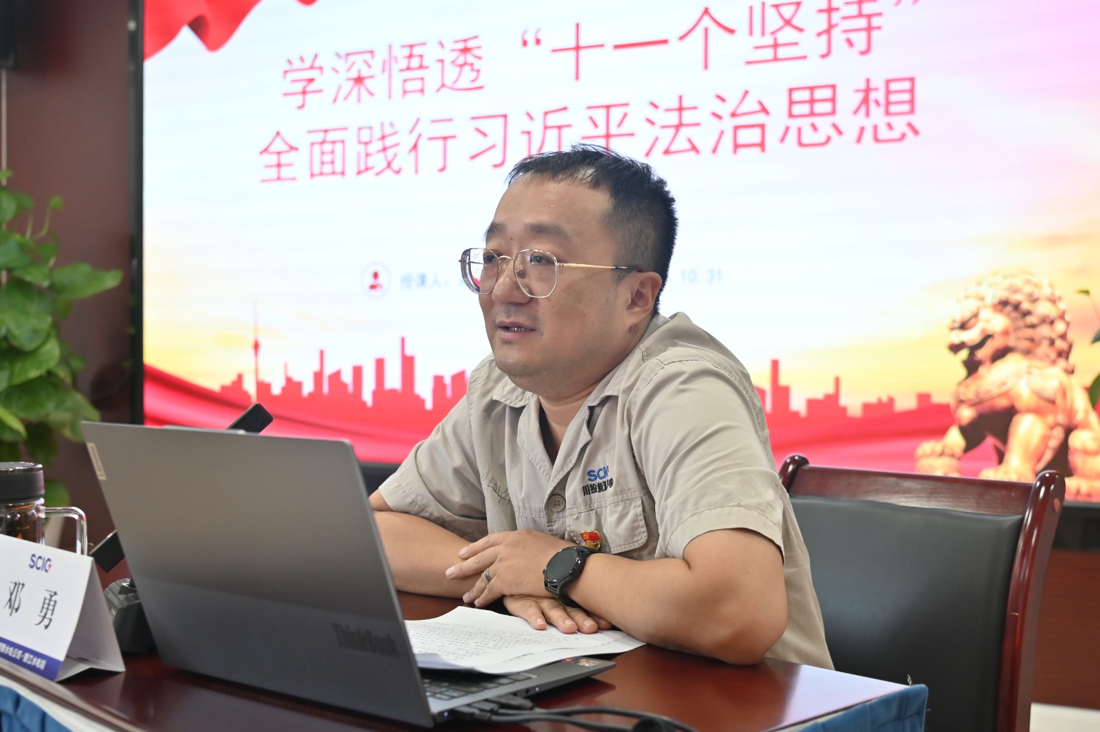 會(huì)上,公司黨總支副書記、董事會(huì)秘書、工會(huì)主席鄧勇以“學(xué)深悟透‘十一個(gè)堅(jiān)持’,全面踐行習(xí)近平法治思想”為題,從習(xí)近平法治思想的核心理念、總體部署、關(guān)鍵舉措、重要成果四個(gè)方面做了系統(tǒng)闡述,詳細(xì)解讀了學(xué)深悟透“十一個(gè)堅(jiān)持”的內(nèi)在邏輯和豐富內(nèi)涵,進(jìn)一步深化了公司員工對(duì)習(xí)近平法治思想的理解和認(rèn)識(shí)。