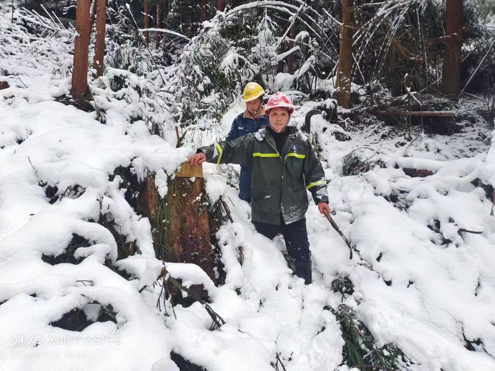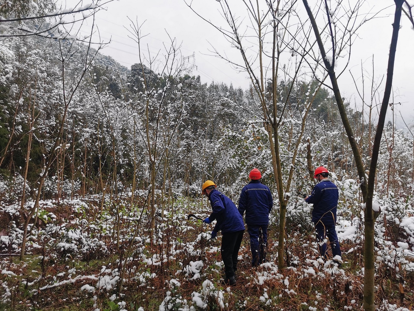 1月23日,天彭電力制定詳細的樹障清理計劃。巡線員手持砍刀,翻山越嶺,負重前行,踩著嘎吱作響的積雪,迎著刀割般的寒風,迅速開始對110kV鳳回線、10kV沙橋線、鳳通線等線路設(shè)備進行巡查,對倒伏在線路的竹樹進行“圍剿”,共清理樹枝、竹子共110余棵,現(xiàn)場巡線員盡管臉凍得通紅、手凍得僵硬、腳凍得麻木,仍有條不紊地開展工作,經(jīng)過一天的辛勤巡檢,線路和設(shè)備均運行正常。