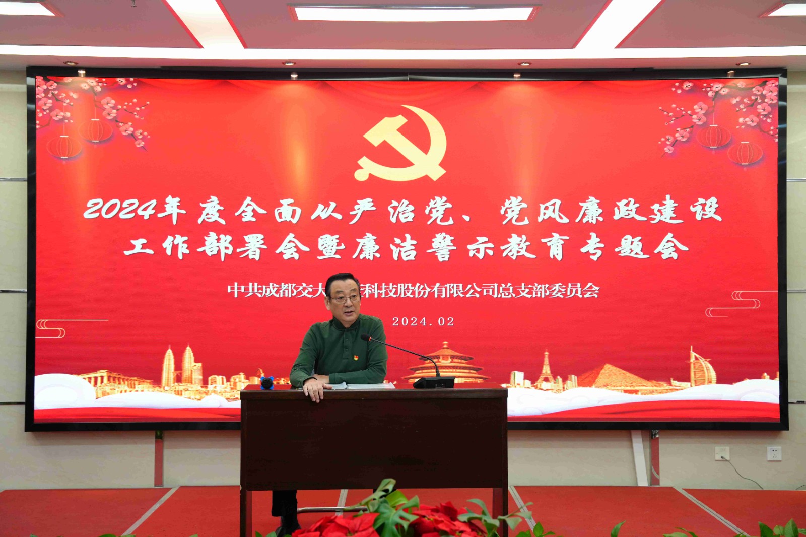 為深入推進全面從嚴(yán)治黨,進一步落實公司黨風(fēng)廉政建設(shè)責(zé)任制,2月27日交大光芒召開2024年度全面從嚴(yán)治黨、黨風(fēng)廉政建設(shè)工作部署會暨廉潔警示教育大會。公司領(lǐng)導(dǎo)班子成員、主管及以上管理人員、黨員參加會議。公司黨總支書記、總經(jīng)理劉成輝主持會議并作廉潔警示談話。