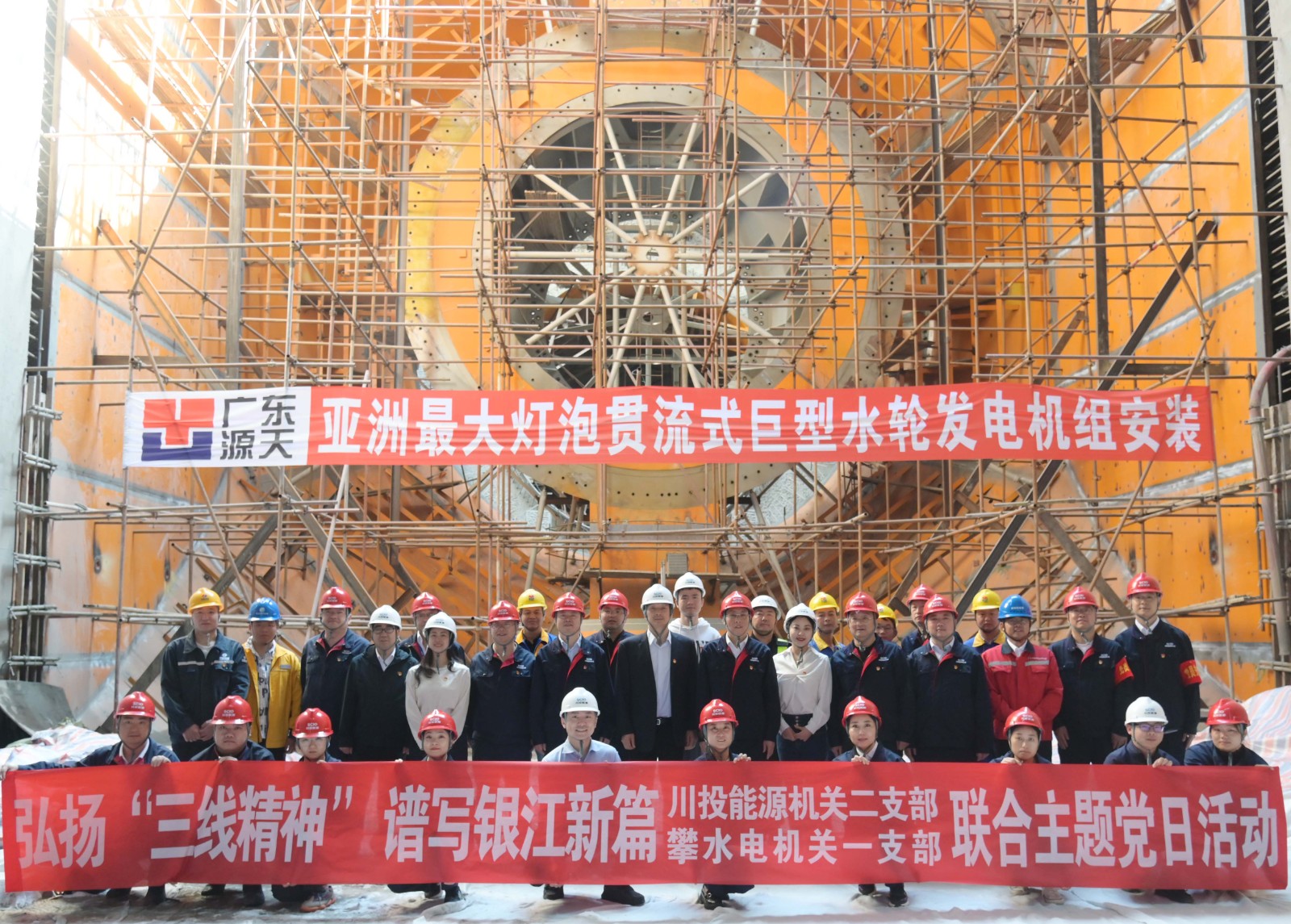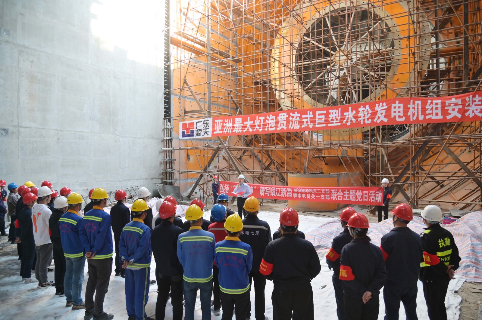 在銀江水電站亞洲最大燈泡貫流式巨型水輪發(fā)電機(jī)組安裝現(xiàn)場,川投能源機(jī)關(guān)二支部書記李睿講授了工地微黨課《承諾》,與大家一起重溫銀江水電站建設(shè)過程中的感人故事?;顒?dòng)中,徐孝剛用通俗易懂的語言,為現(xiàn)場同志介紹了銀江水電站的建設(shè)特點(diǎn)、施工情況和下一步工程建設(shè)計(jì)劃,并號召全體黨員和團(tuán)員青年要圍繞“保一爭二”提前發(fā)電重要目標(biāo),團(tuán)結(jié)一心、勇挑重?fù)?dān)、善作善成。