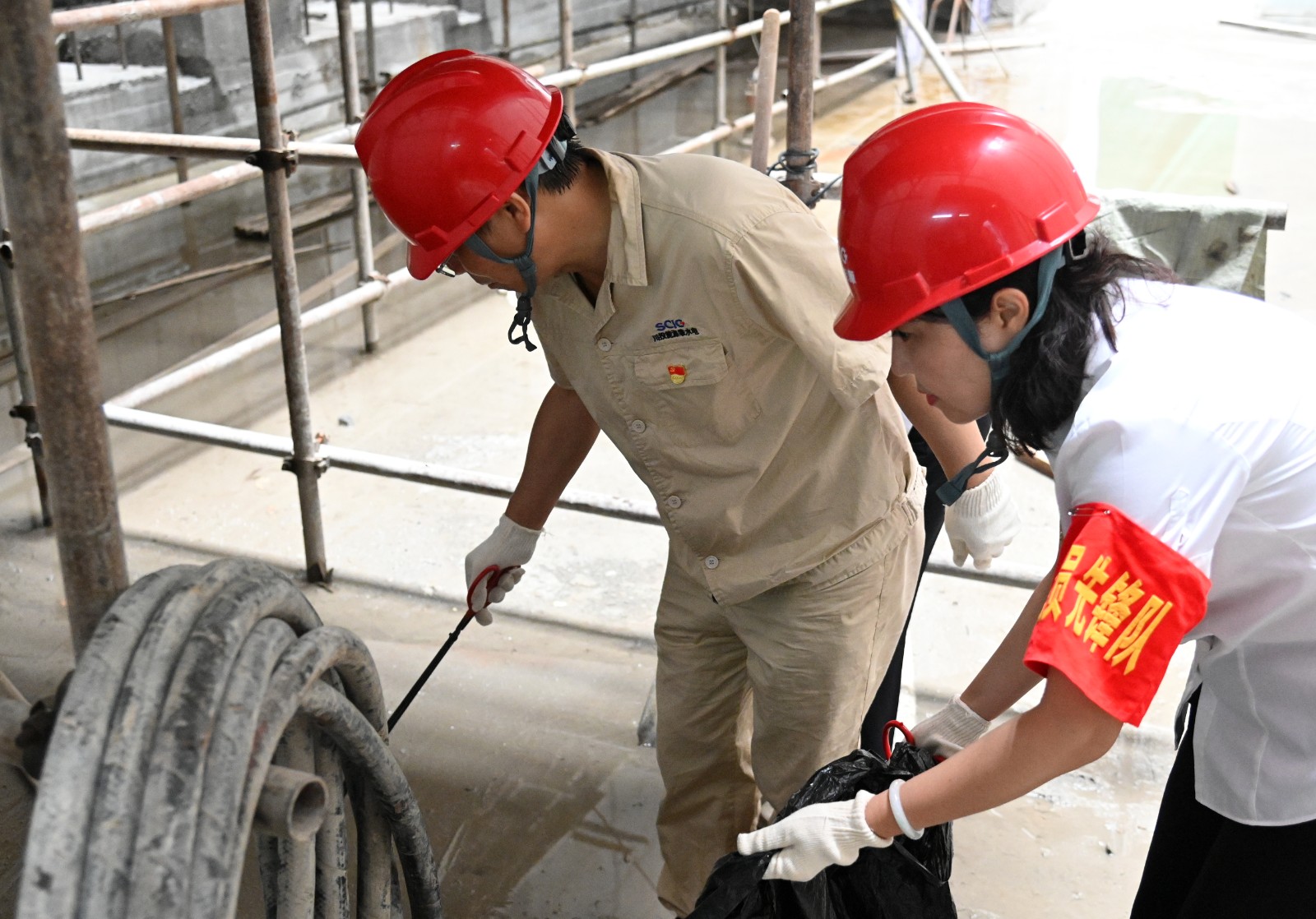 大家來到銀江水電站壩頂施工通道,對現(xiàn)場吊裝點(diǎn)及各施工作業(yè)面衛(wèi)生清潔區(qū)域進(jìn)行了清掃分工,各支部黨員同志沖鋒在前,主動(dòng)帶領(lǐng)其他黨員同志、志愿者對銀江水電站壩頂、壩頂至安裝間通道、安裝間、副廠房等區(qū)域進(jìn)行了衛(wèi)生清掃、垃圾清運(yùn),并協(xié)調(diào)了臨時(shí)堆放物資、安裝構(gòu)建的整理吊裝等,為后期轉(zhuǎn)子支架到達(dá)現(xiàn)場營造了整潔、便捷的環(huán)境。