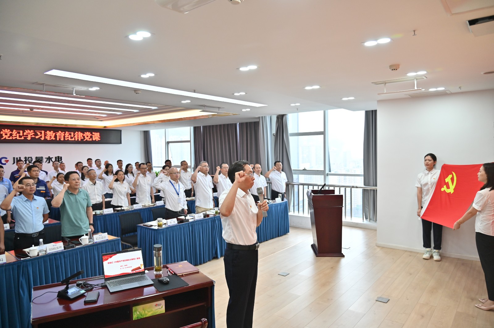 在全黨開(kāi)展黨紀(jì)學(xué)習(xí)教育和黨的103歲生日來(lái)臨之際,按照川投能源黨委和攀水電黨總支的安排部署,6月30日上午,川投能源副總經(jīng)理、攀水電公司黨總支書記、董事長(zhǎng)徐孝剛講授了黨紀(jì)學(xué)習(xí)教育紀(jì)律黨課并宣講省委十二屆五次全會(huì)精神,公司全體員工、參建單位負(fù)責(zé)人及黨員代表共計(jì)50余人參加。