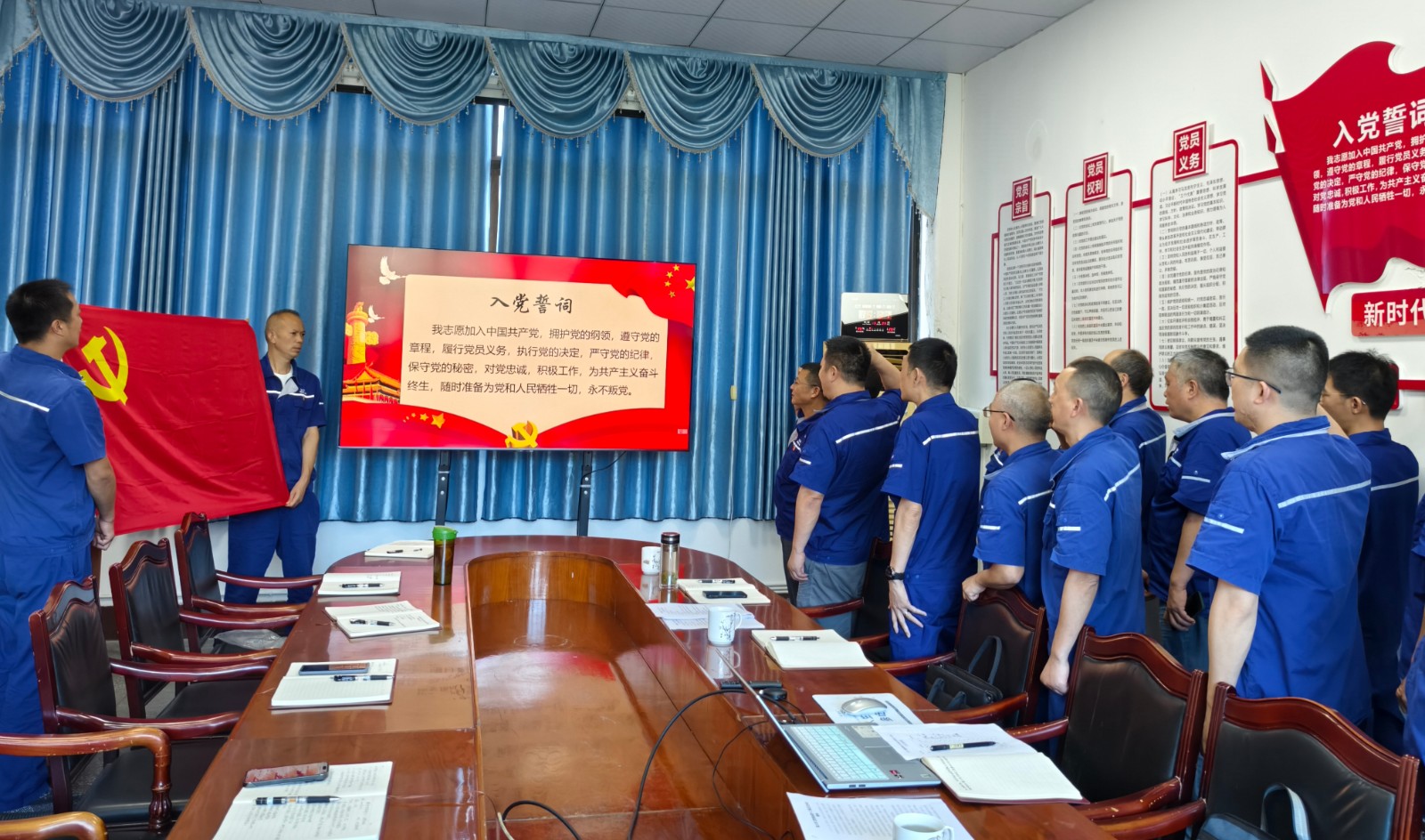 王力生以《黨的光輝歲月》為題講授黨課。深情回顧我們黨103年來的輝煌經(jīng)歷和艱辛探索,教育引導(dǎo)全體黨員深刻認(rèn)識到黨奮斗歷史的艱辛不易,緬懷革命先輩的豐功偉績,傳承他們的革命精神。隨后,王力生帶領(lǐng)全體黨員面向黨旗,重溫入黨誓詞,堅定理想信念。