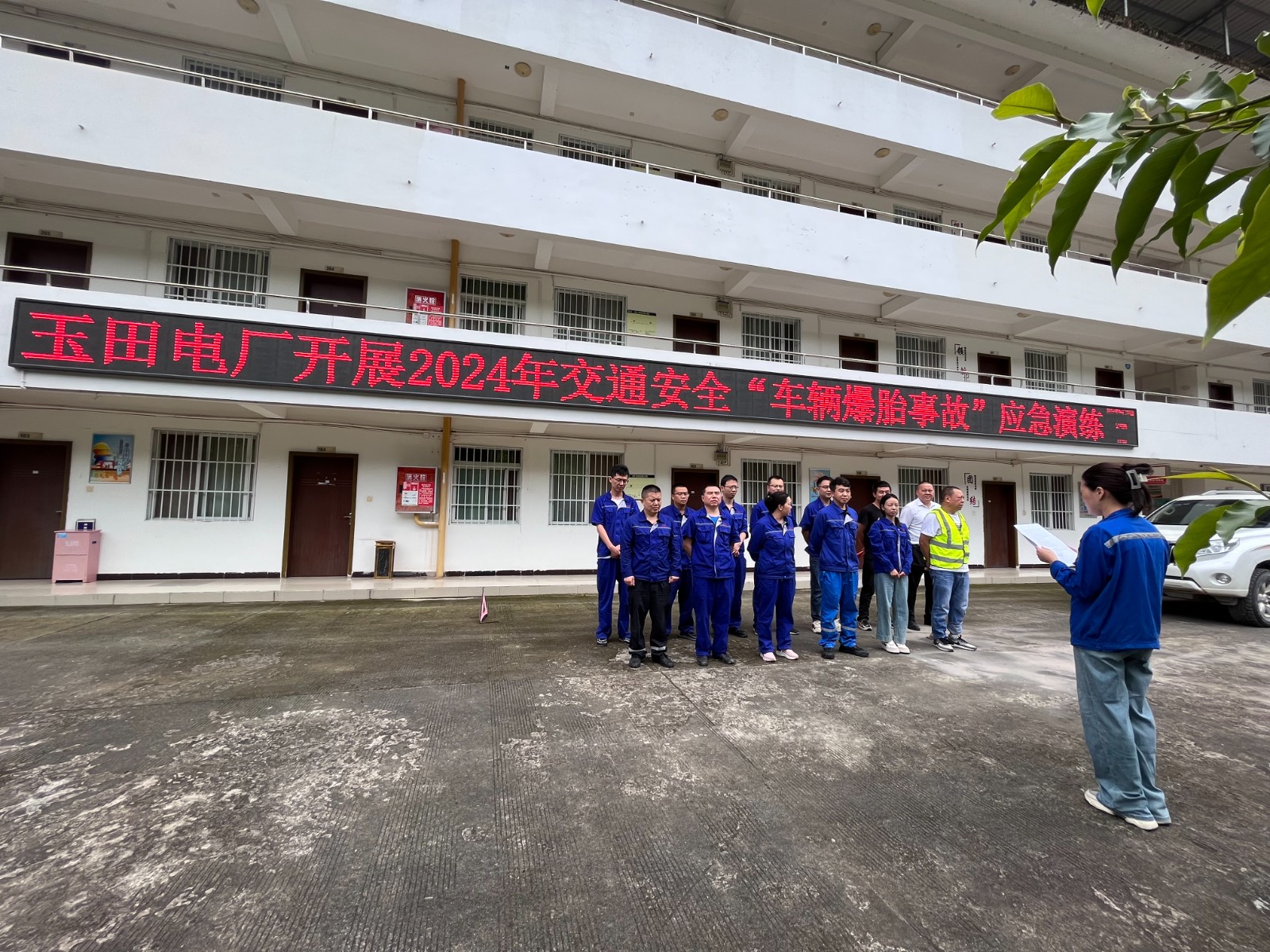 玉田電廠進(jìn)廠公路為鄉(xiāng)村水泥道和原始基坑路,路面窄、彎道多且存在駕駛視野盲區(qū),汛期雨后道路積水多、山上滾石現(xiàn)象時(shí)有發(fā)生,道路交通存在安全風(fēng)險(xiǎn)隱患。為提高電廠駕駛員的應(yīng)急響應(yīng)能力,確保發(fā)生車輛爆胎等突發(fā)意外時(shí)能迅速有效處置,提高自救能力,近日,玉田電廠開展車輛爆胎應(yīng)急演練。