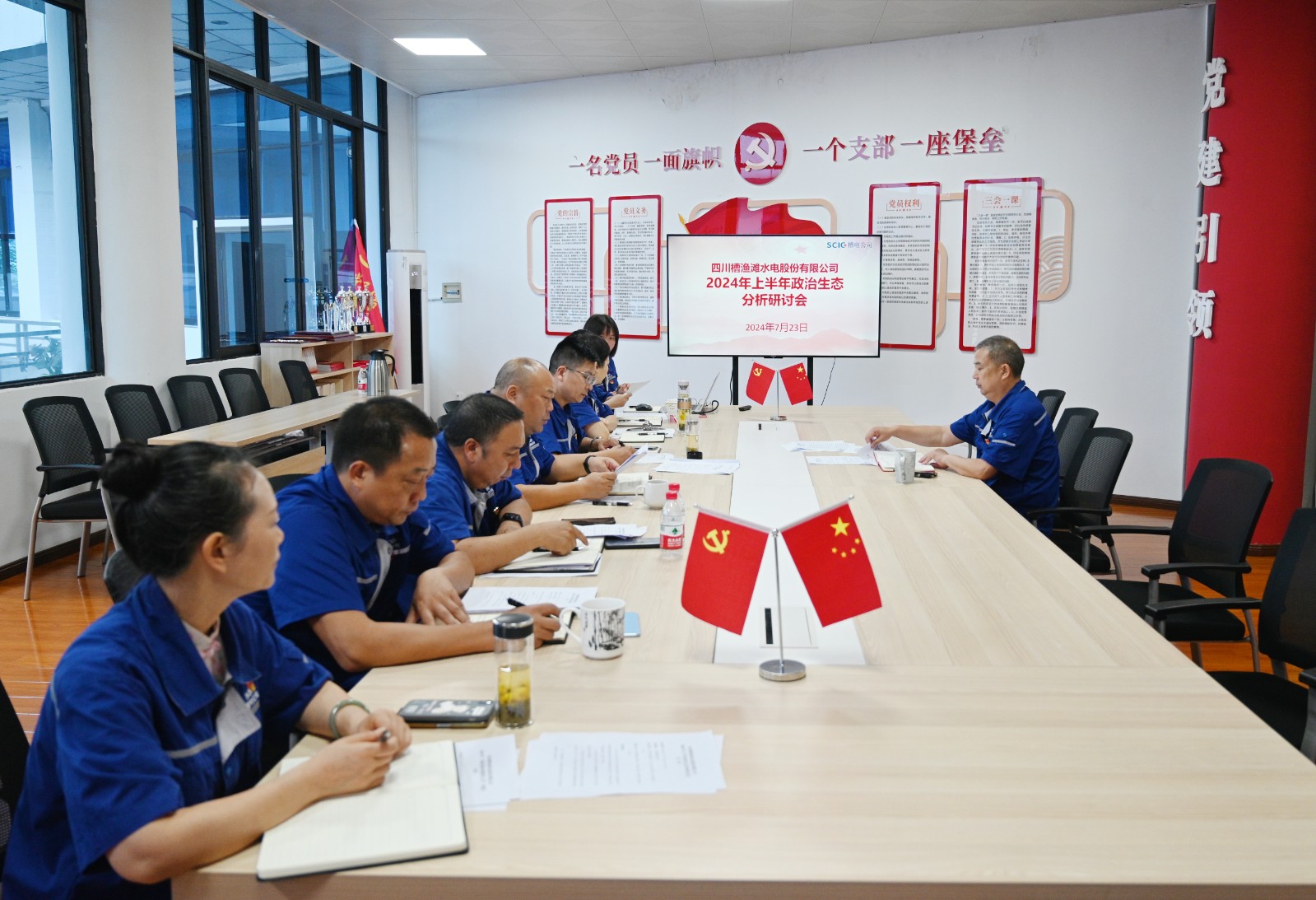 為推動全面從嚴(yán)治黨主體責(zé)任落實,努力營造風(fēng)清氣正的政治生態(tài),7月23日,槽漁灘公司黨委召開2024年上半年政治生態(tài)分析研判會,公司黨委書記、董事長何光富出席會議并講話,黨委副書記、工會主席陳堯主持,公司領(lǐng)導(dǎo)班子成員,紀(jì)檢工作部、黨群工作部相關(guān)人員參加會議。