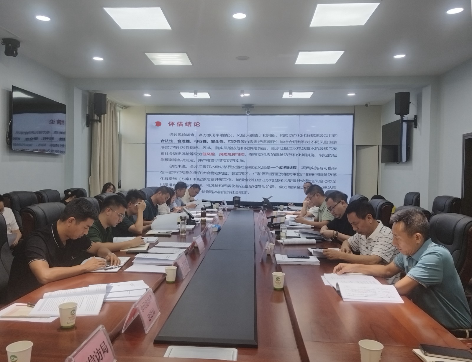 會(huì)議首先由設(shè)計(jì)單位對(duì)銀江水電站工程蓄水階段移民安置社會(huì)穩(wěn)定風(fēng)險(xiǎn)評(píng)估報(bào)告成果進(jìn)行匯報(bào),與會(huì)人員進(jìn)行了充分討論,在社會(huì)穩(wěn)定風(fēng)險(xiǎn)識(shí)別、風(fēng)險(xiǎn)防范和化解措施等方面提出了修改意見(jiàn)及建議。會(huì)議認(rèn)為,該報(bào)告內(nèi)容符合實(shí)際情況,達(dá)到《四川省社會(huì)穩(wěn)定風(fēng)險(xiǎn)評(píng)估辦法》要求,金沙江銀江水電站工程蓄水階段移民安置社會(huì)穩(wěn)定風(fēng)險(xiǎn)等級(jí)為低風(fēng)險(xiǎn),風(fēng)險(xiǎn)總體可控。會(huì)議要求相關(guān)部門要持續(xù)抓好風(fēng)險(xiǎn)防范工作及化解措施的執(zhí)行,確保不發(fā)生水利水電工程移民群體事件,為下一步銀江水電站工程蓄水移民安置驗(yàn)收打牢基礎(chǔ)。