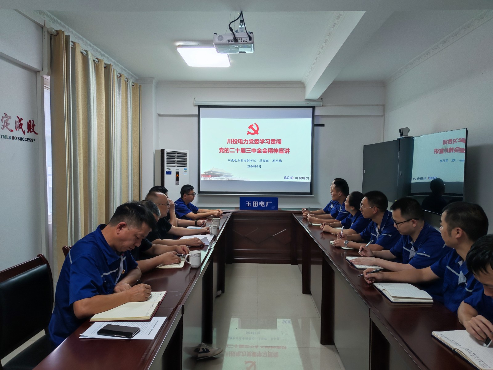 為深入學(xué)習貫徹黨的二十屆三中全會精神,推動全會精神落實落地,9月11日,川投電力黨委副書記、總經(jīng)理蔡承德按照川投電力黨委統(tǒng)籌安排,赴玉田電廠黨支部開展黨的二十屆三中全會精神專題宣講,同時督導(dǎo)全會精神的學(xué)習宣傳貫徹工作。