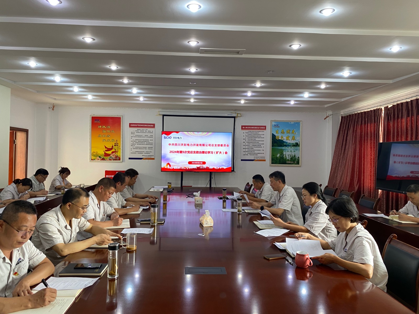 近日,天彭電力黨總支召開2024年第9次黨總支政治理論學習(擴大)會議,集中學習省委十二屆六次全會精神,研究公司貫徹落實舉措。公司黨總支書記、執(zhí)行董事、總經(jīng)理劉紅兵主持,領(lǐng)導班子成員、黨員、干部、關(guān)鍵崗位人員參加學習。
