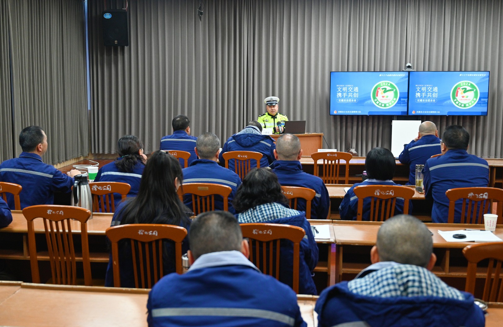 為進(jìn)一步強(qiáng)化員工的安全意識,提升員工自覺遵守交通規(guī)則的能動性,有效降低交通事故的風(fēng)險,在“全國交通安全日”來臨之際,槽漁灘公司邀請洪雅縣交通安全協(xié)會主席羅德軍、洪雅縣交通警察大隊警官賈龍到公司開展“文明出行 攜手共創(chuàng)”交通安全法律法規(guī)知識宣傳培訓(xùn)活動?;顒佑晒靖笨偨?jīng)理雷曉彬主持,公司在家班子成員、中層管理人員和全體駕駛員共計四十余人參加。