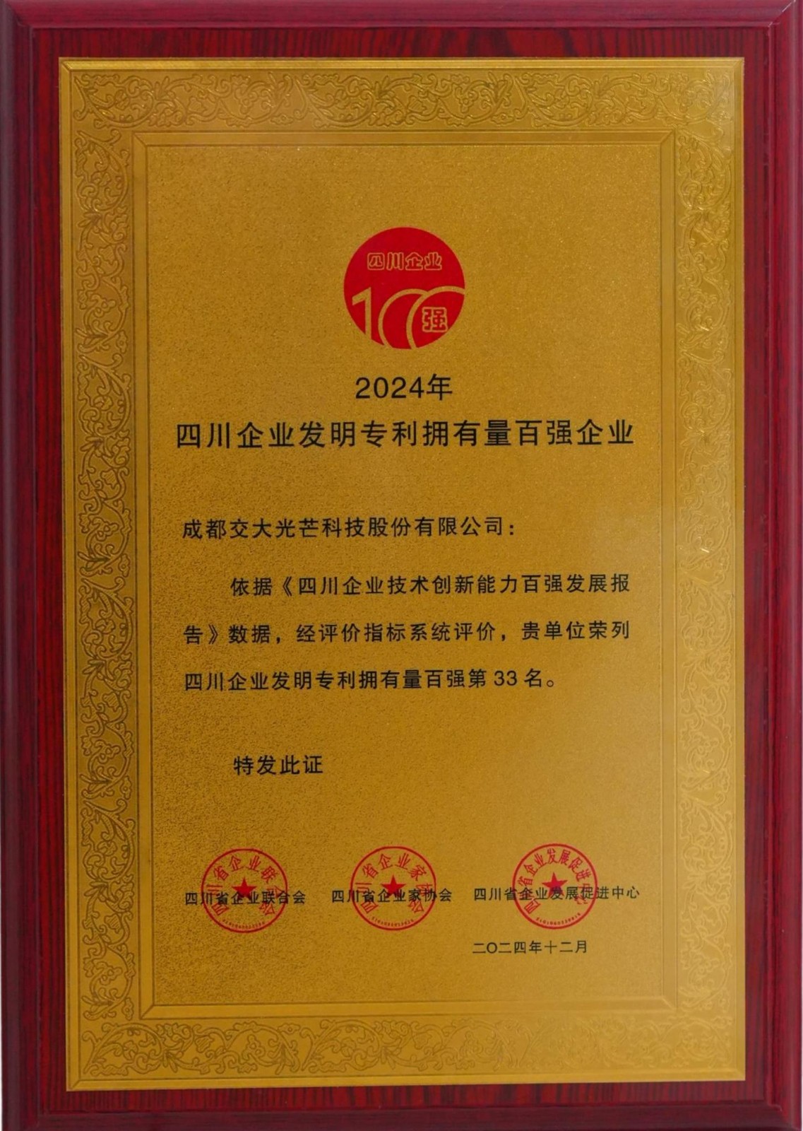 近日,以“技術(shù)創(chuàng)新榮耀四川”為主題的2024年四川企業(yè)技術(shù)創(chuàng)新發(fā)展大會在成都召開,大會發(fā)布《2024四川企業(yè)技術(shù)創(chuàng)新發(fā)展能力百強(qiáng)發(fā)展報告》,川投能源所屬交大光芒榮獲四川企業(yè)技術(shù)創(chuàng)新能力百強(qiáng)企業(yè)(第42位)和四川企業(yè)發(fā)明專利擁有量百強(qiáng)企業(yè)(第33位),這是交大光芒連續(xù)三年獲評“雙百強(qiáng)”企業(yè)認(rèn)定。大會還公布了49名企業(yè)技術(shù)創(chuàng)新突出貢獻(xiàn)人物,交大光芒首席專家、副總經(jīng)理陳奇志榮獲“2024年四川企業(yè)技術(shù)創(chuàng)新突出貢獻(xiàn)人物”稱號。