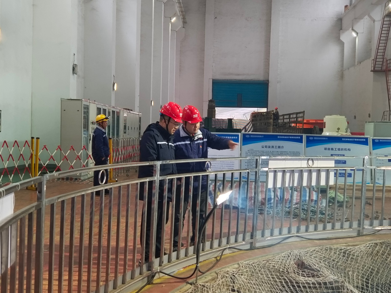 陳云明先后來到高奉山電廠和百花灘電廠的大壩、發(fā)電廠房、中控室等重點(diǎn)區(qū)域,對設(shè)備運(yùn)行狀況、安全防護(hù)設(shè)施、消防器材配備等進(jìn)行了全面細(xì)致的檢查。在百花灘電廠2號機(jī)組A級檢修現(xiàn)場,陳云明深入水車室、下風(fēng)洞、進(jìn)蝸殼作業(yè)現(xiàn)場等地,對機(jī)組檢修安全規(guī)范、標(biāo)準(zhǔn)化作業(yè)進(jìn)行了檢查,并對參檢職工的辛勤工作表示感謝,叮囑作業(yè)人員要牢記安全,注意身體,在確保安全、質(zhì)量、進(jìn)度的前提下,合理安排好作息時(shí)間,不打疲勞戰(zhàn),以旺盛的精力和昂揚(yáng)的斗志投入檢修工作中,確保檢修工作安全、高效完成。