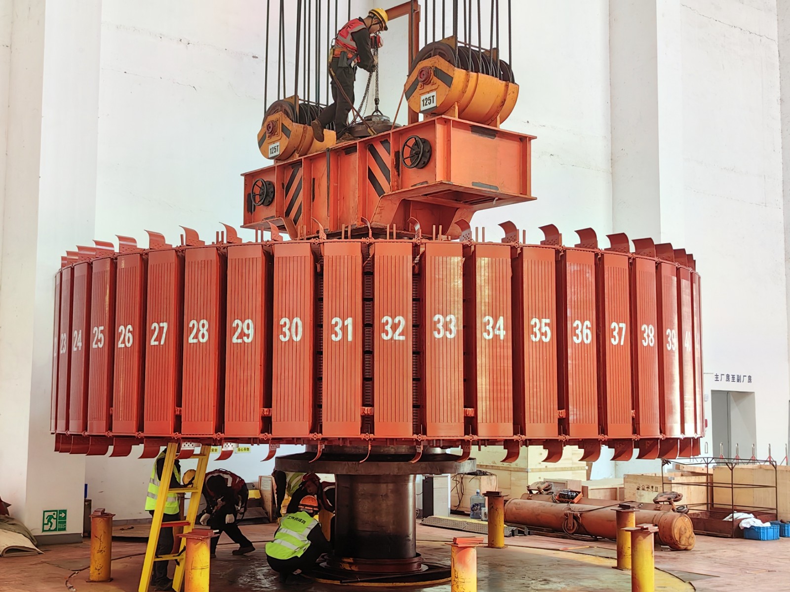為確保轉(zhuǎn)子一次回裝成功,回裝作業(yè)前,川投電力檢修維護隊與兩家電廠提前謀劃,仔細(xì)梳理轉(zhuǎn)子回裝工作流程,對檢修人員進行全方位安全、技術(shù)交底?;匮b過程中,組織黨員骨干帶頭攻堅,檢修團隊成員迅速響應(yīng),分工明確、協(xié)同配合,嚴(yán)格遵守既定標(biāo)準(zhǔn)要求和施工工序,確保轉(zhuǎn)子回裝作業(yè)高效推進。