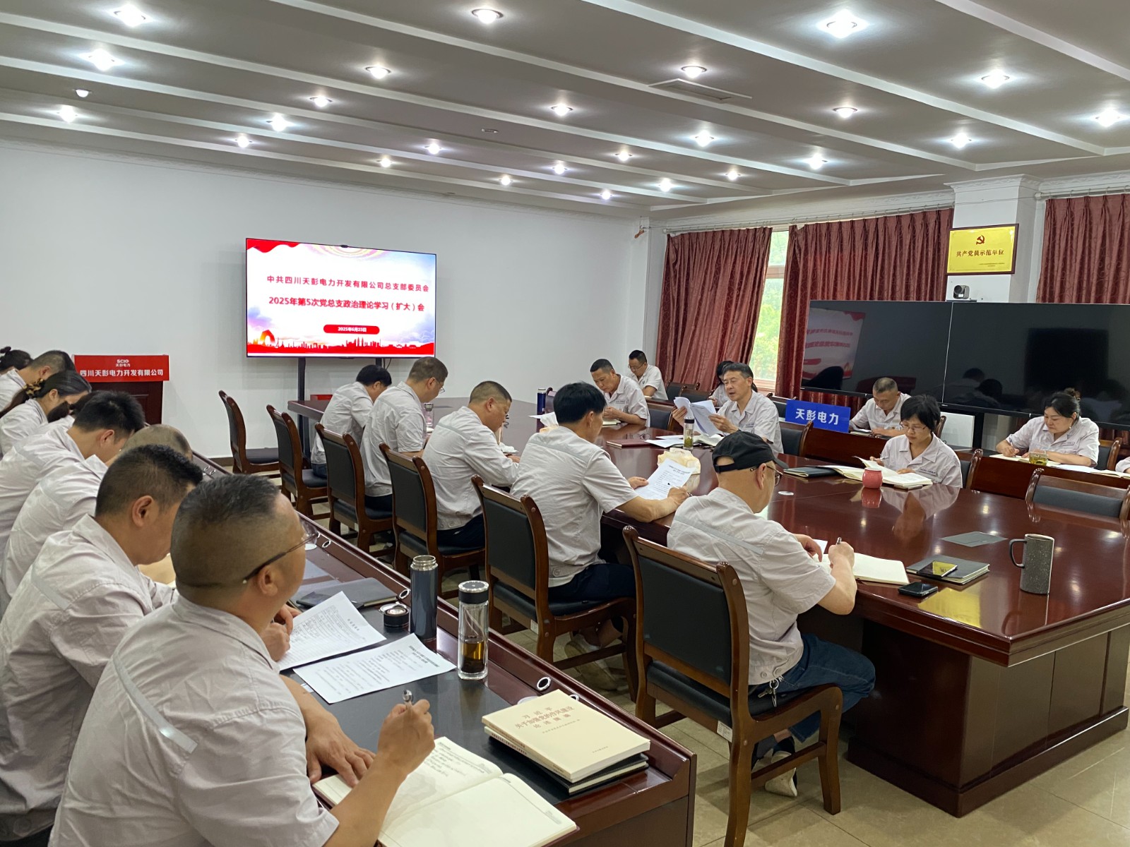 近日,天彭電力黨總支召開(kāi)2025年第5次政治理論學(xué)習(xí)(擴(kuò)大)會(huì)議,由公司黨總支書(shū)記、執(zhí)行董事、總經(jīng)理劉紅兵主持,公司領(lǐng)導(dǎo)班子、黨員及關(guān)鍵崗位人員參加學(xué)習(xí)。
