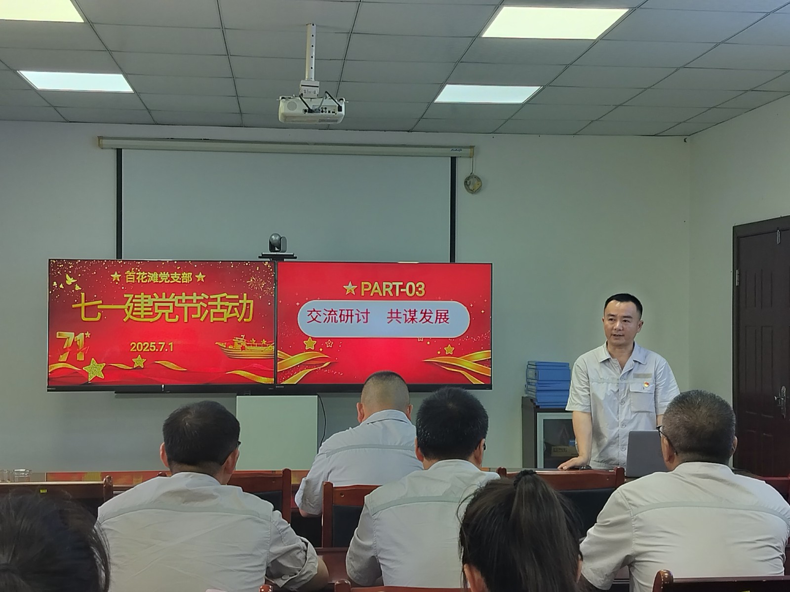 為慶祝中國共產(chǎn)黨成立104周年,7月1日,百花灘黨支部開展“奮進新征程 建功新時代” 主題黨日活動,黨支部全體黨員、預(yù)備黨員、入黨積極分子齊聚一堂,以豐富形式共憶初心、共學(xué)理論、共謀發(fā)展。