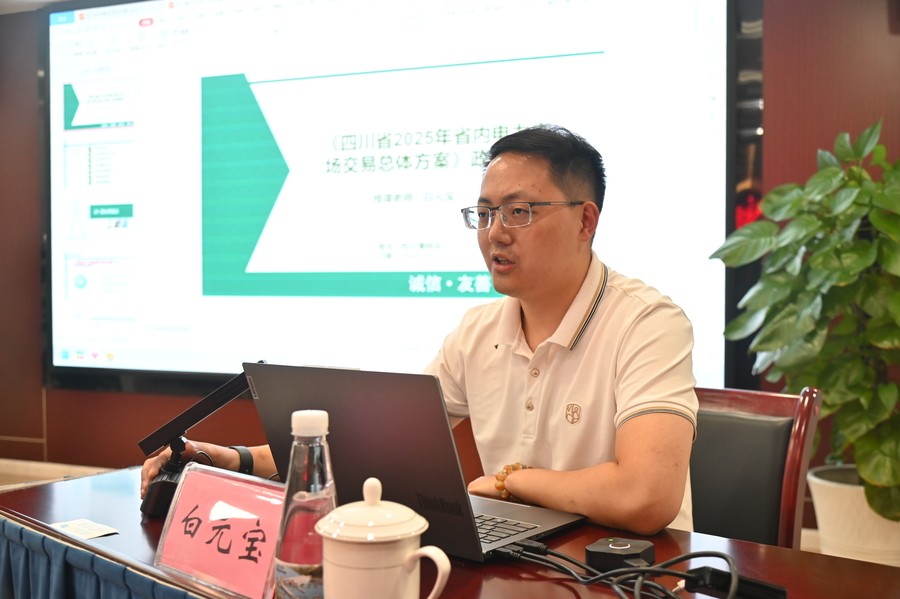 此次培訓邀請到四川能投綜合能源有限責任公司電力交易分公司副總經(jīng)理白元寶,圍繞四川省電力銷售政策、交易實施方案等方面內(nèi)容進行詳細講授。白元寶首先對《四川省2025年省內(nèi)電力市場交易總體方案》進行政策解讀;再從“水火風光同臺競爭、分時簽約銜現(xiàn)貨、零售市場防風險”核心變化點、對市場成員要求、電力批發(fā)交易、電力零售交易、價格及結算機制、市場銜接事項等方面進行講授;最后針對發(fā)電企業(yè)的電力交易方案,從中長期及現(xiàn)貨交易,圍繞規(guī)則要求、市場形勢、邊界條件、交易組織模式等方面進行詳細講解,并對現(xiàn)貨市場下的中長期交易、增強抗市場風險能力、構建交易組織體系、現(xiàn)貨市場的影響等重點、難點的核心事項進行了分析和講授。