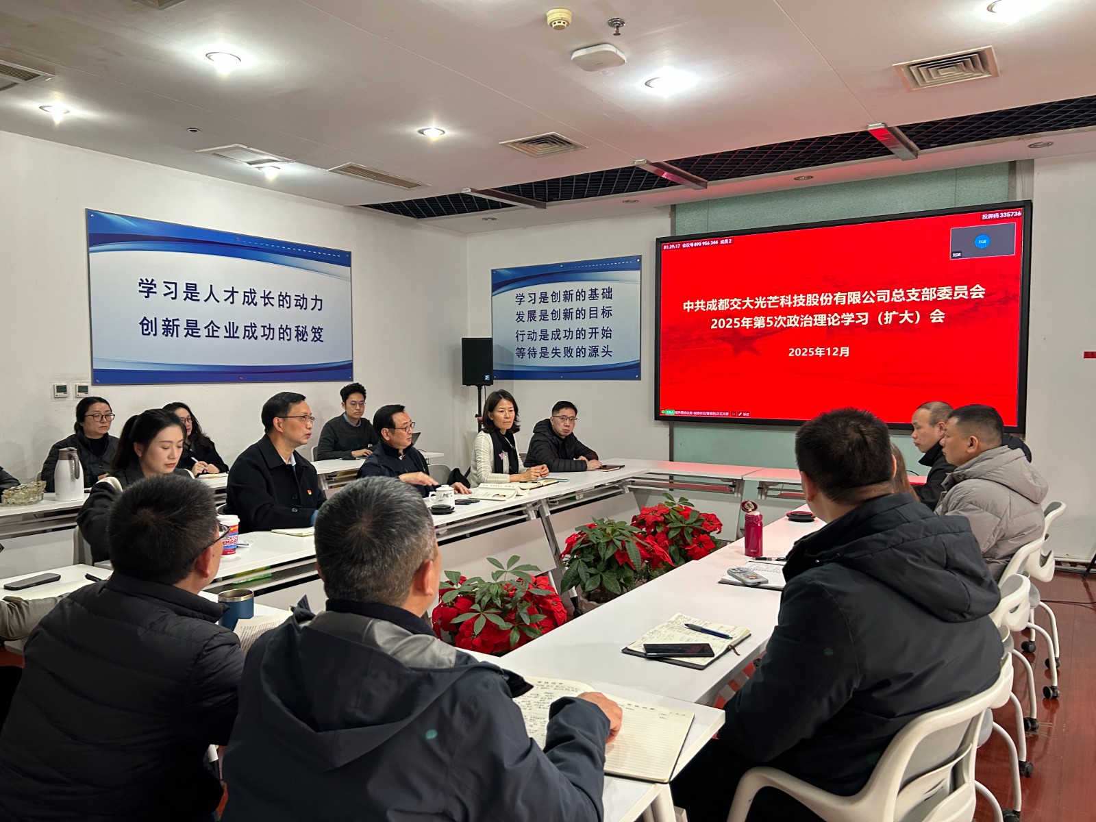12月22日,交大光芒黨總支召開2025年第5次政治理論學(xué)習(xí)(擴(kuò)大)會。會議由黨總支書記、常務(wù)副總經(jīng)理王濤主持,黨總支委員、經(jīng)營班子成員和中層及以上管理人員參加學(xué)習(xí)。