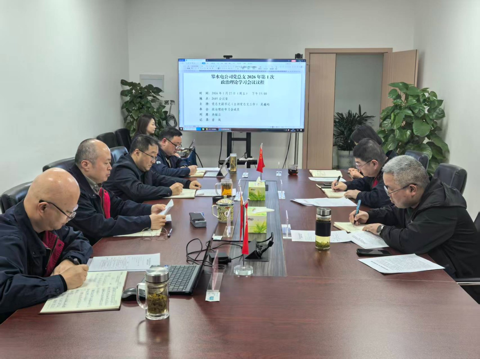 1月23日,攀水電公司黨總支組織召開了2026年第1次政治理論學習會,黨總支副書記、總經(jīng)理吳巍嶼主持會議并帶頭研討發(fā)言,黨總支政治理論學習會成員參加。
