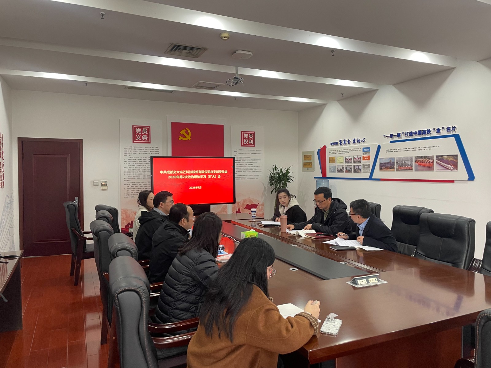 為深入學習貫徹黨的二十屆四中全會精神,鞏固和深化深入貫徹中央八項規(guī)定精神學習教育成果,開好交大光芒2025年度黨員領導干部組織生活會,2月2日,交大光芒黨總支召開2026年第2次政治理論學習(擴大)會。會議由黨總支書記、總經(jīng)理王濤主持,黨總支委員、人力資源部、紀檢工作部、黨群工作部工作人員參加學習。