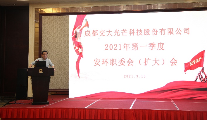 交大光芒黨總支書記、安環(huán)職委會主任、總經(jīng)理劉成輝對2021年安環(huán)職重點(diǎn)工作進(jìn)行部署,并安排了近期安全環(huán)保大檢查工作。劉成輝指出,公司上下要認(rèn)真落實(shí)疫情防控常態(tài)化要求,仔細(xì)梳理安全生產(chǎn)、環(huán)境保護(hù)、職業(yè)健康工作,落實(shí)風(fēng)險分級管控和隱患排查整改雙重預(yù)防機(jī)制,將安全關(guān)口前移,保障公司經(jīng)營發(fā)展平安,并與各部門分管領(lǐng)導(dǎo)和負(fù)責(zé)人簽訂了2021年度安環(huán)職目標(biāo)責(zé)任書。