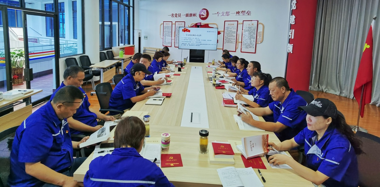 最后全體黨員帶著建黨100周年“政治生日”賀卡集體合影留念。