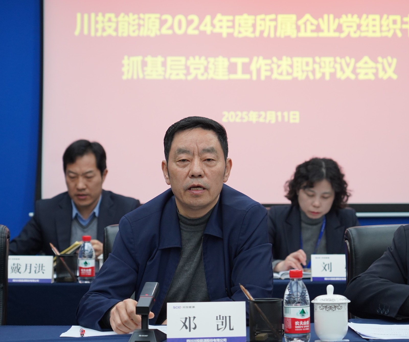 鄧凱表示,這次會議堅持嚴的標準、嚴的作風、嚴的要求,既肯定工作成績和亮點,又指出存在的問題和不足,全面反映了川投能源黨委和各所屬企業(yè)抓黨建工作的總體情況,達到了預期效果。他指出,2024年,川投能源黨委堅定扛起管黨治黨政治責任,黨建引領(lǐng)改革發(fā)展取得新成效、實現(xiàn)新提升。他強調(diào),2025年,川投能源各級黨組織要堅持用改革精神和嚴的標準推進管黨治黨,推動基層黨組織全面進步、全面過硬。要突出舉旗定向,著力提高“政治三力”,持續(xù)推進理論武裝,強化思想政治引領(lǐng),持續(xù)加強政治建設(shè)。要突出組織功能,嚴密組織體系,夯實基層基礎(chǔ),強化黨員教育管理,鍛造堅強戰(zhàn)斗堡壘。要突出黨建引領(lǐng),堅定支持改革重組,穩(wěn)步推進重點任務,抓實黨風廉政建設(shè),扎實做好安全生產(chǎn),切實提升履職效能。