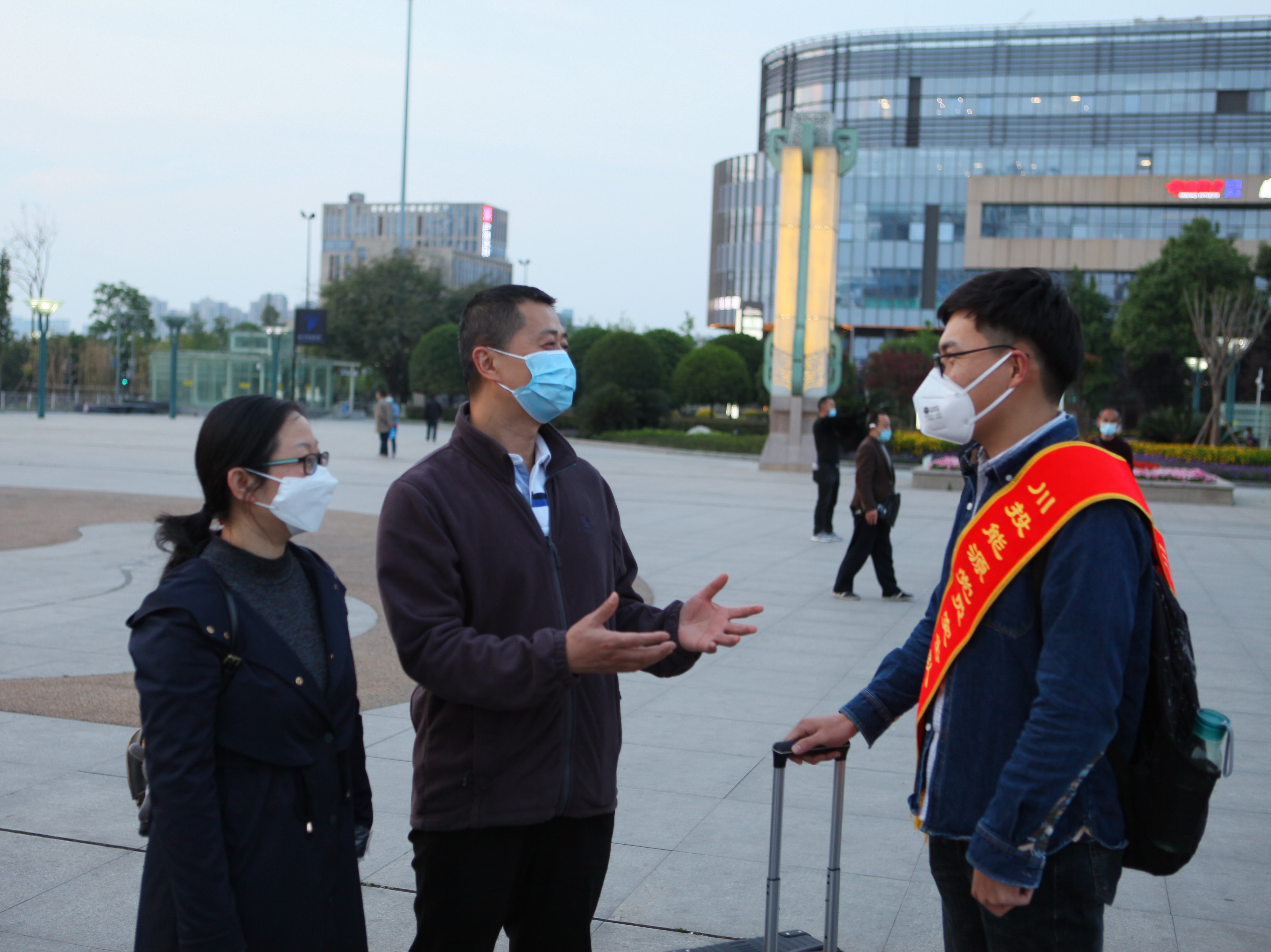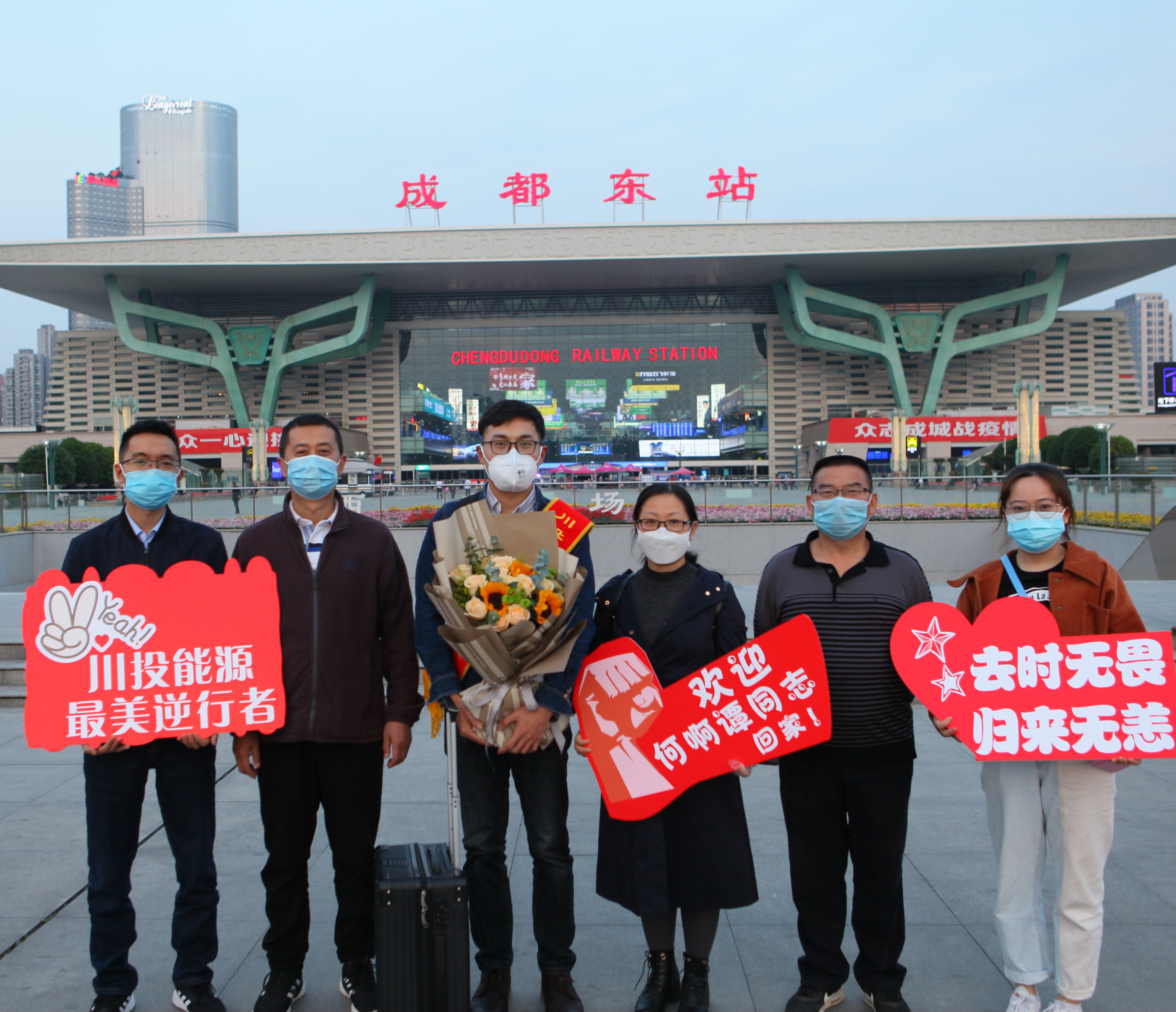 4月25日,川投能源 “最美逆行者”、交大光芒工程突擊隊(duì)隊(duì)員何啊潭同志圓滿完成在武漢鐵路局的值守任務(wù),帶著勝利和平安凱旋歸來(lái)。川投能源黨委副書(shū)記、工會(huì)主席楊超龍與黨群工作部主任楊鑫以及交大光芒黨總支委員汪志橋一道,手捧鮮花,到成都東站迎接川投能源“最美逆行者”回家。